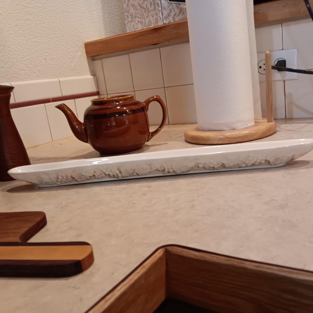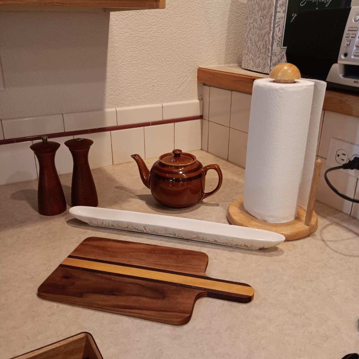 RELISH DISH HAS A SMALL CHIP, PAPER TOWELS NOT INCLUDED