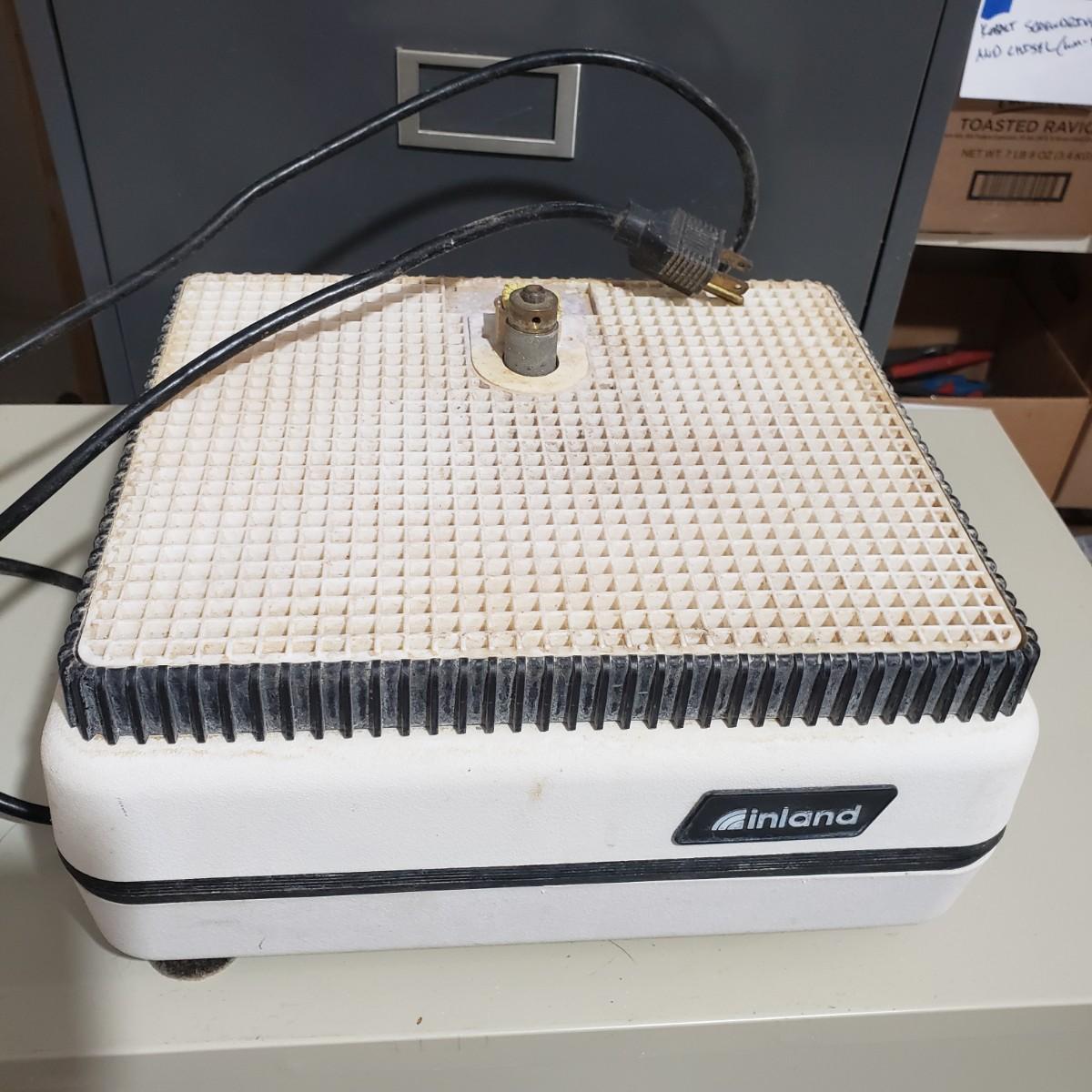 This glass/tile grinder is made by Inland. The unit measures 12" x 9" x 6"H. It does power on when plugged in, but does not have a picture showing, as it does not light up with a power button.