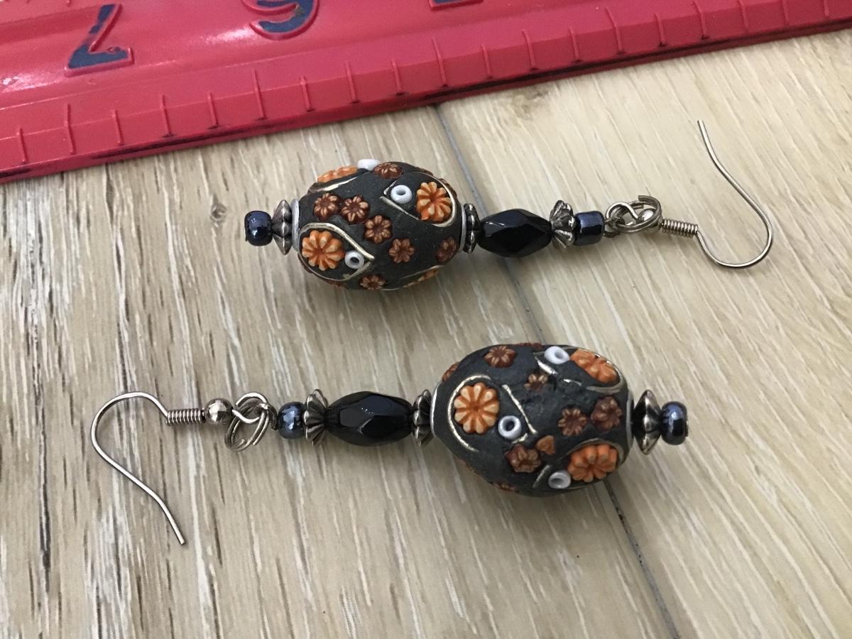 Inlay Dangle Earrings Flowers