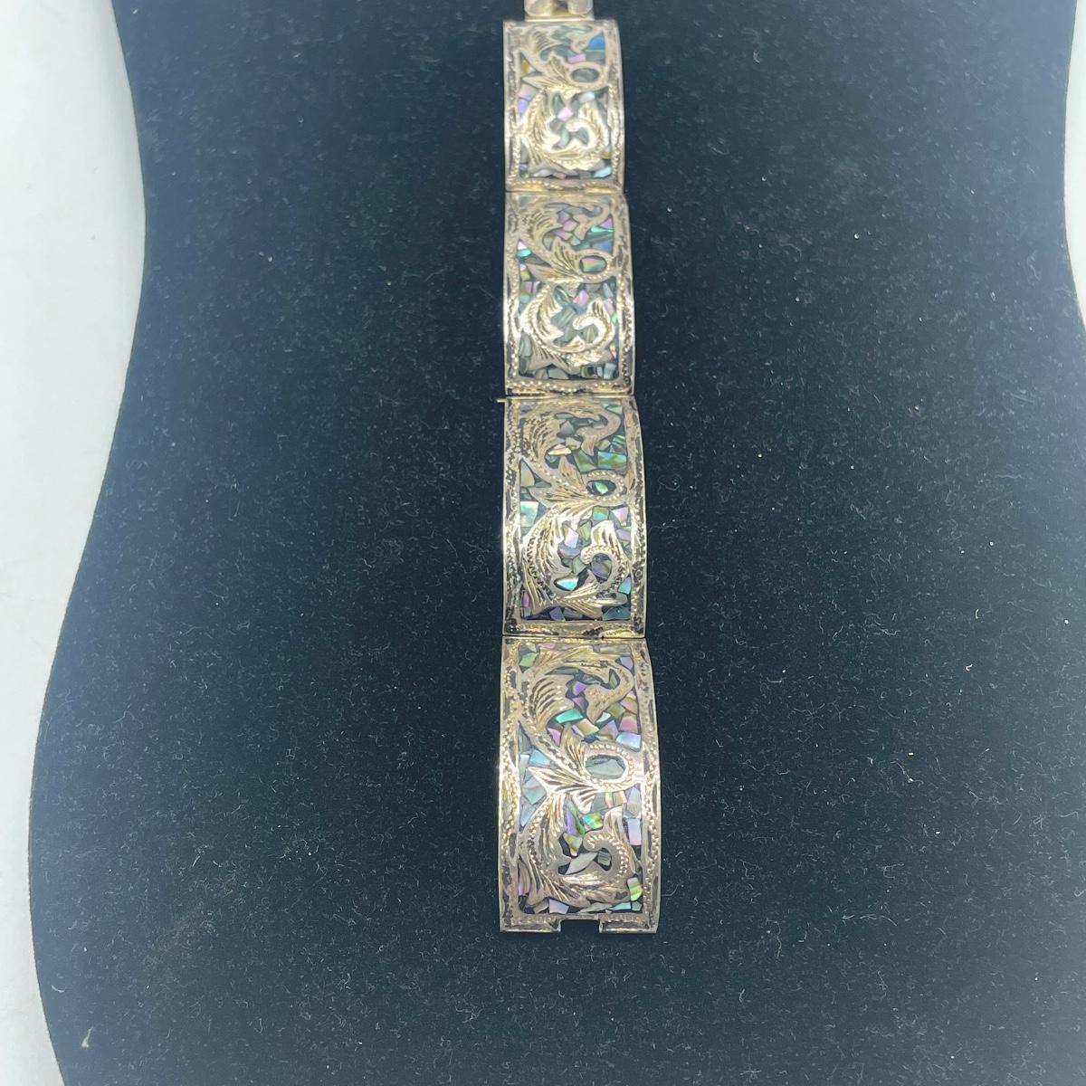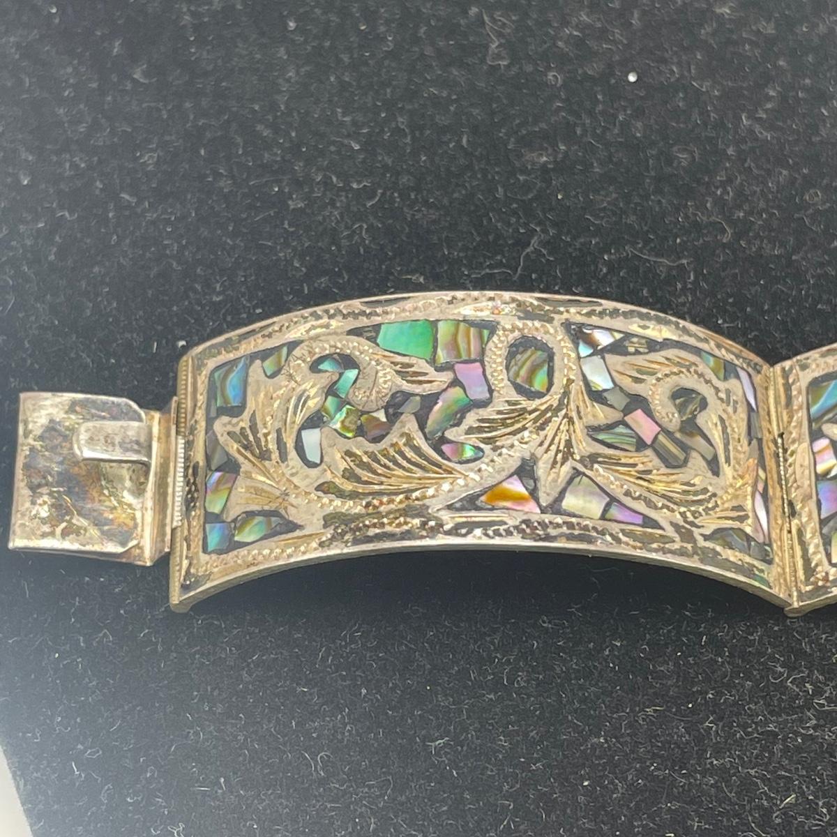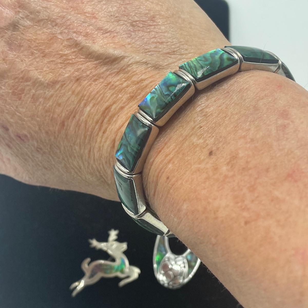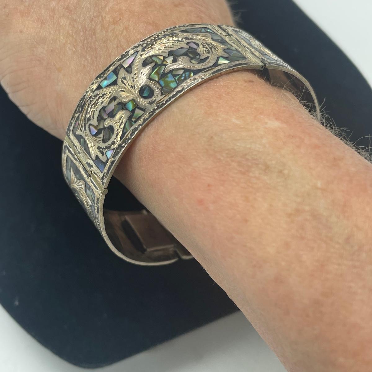 We have put together a nice assortment of inlay jewelry for you here that includes 2 bangles and one clasp bracelet, a couple of pendants, a brooch and both a post and a pair of clip-on earrings.