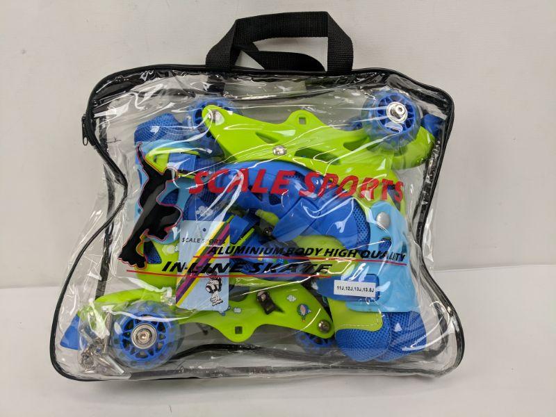 In-Line Skates, Blue & Green, Adj Size Youth 11-13.5, Scale Sports - New