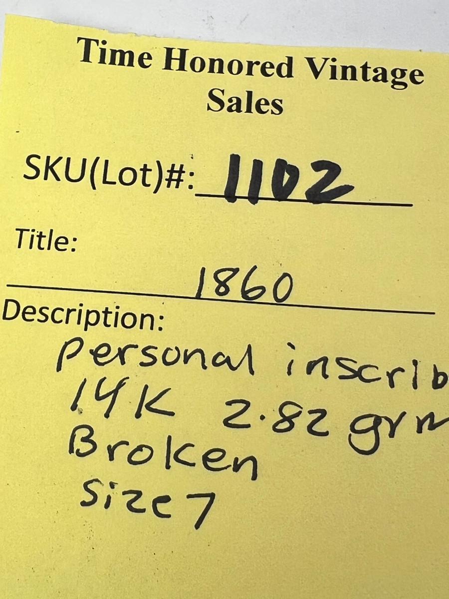 Inscribed Wedding Ring 14 K Gold Band