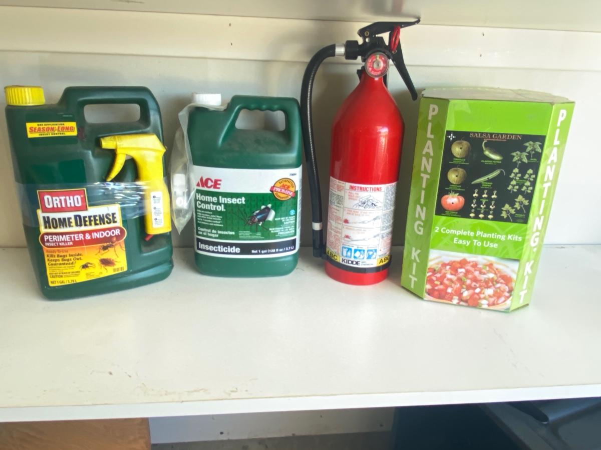 INSECTICIDES, FIRE EXTINGUISHER AND PLANTING KIT