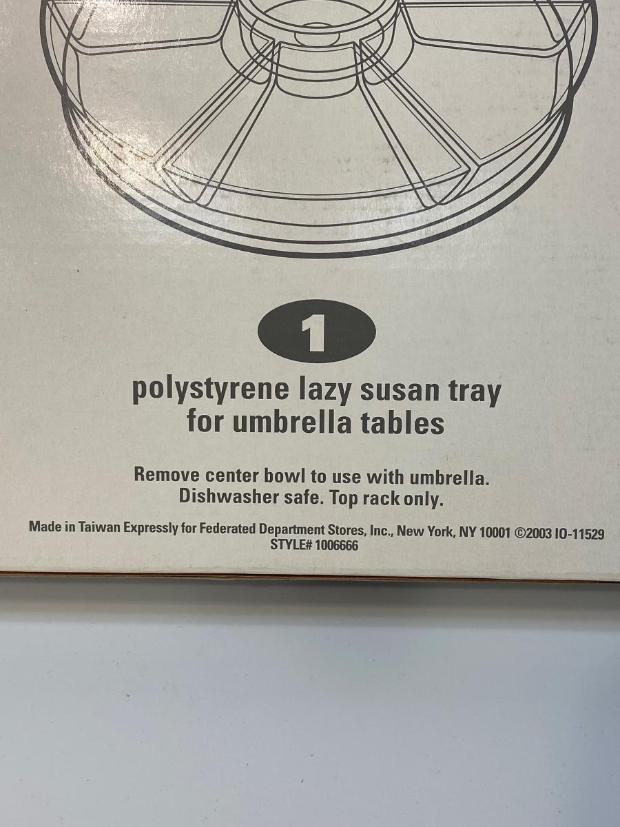 Inside Out by the Cellar Dinnerware Kitchenware Polystyrene Lazy Susan Tray For Umbrella Tables, there is no significant damage to the piece and is in good useable condition.
