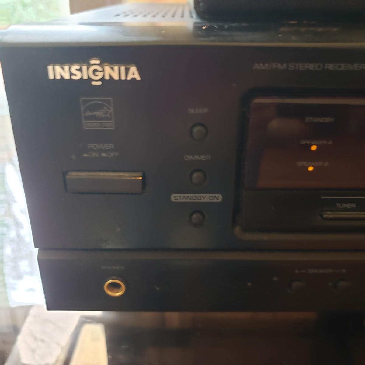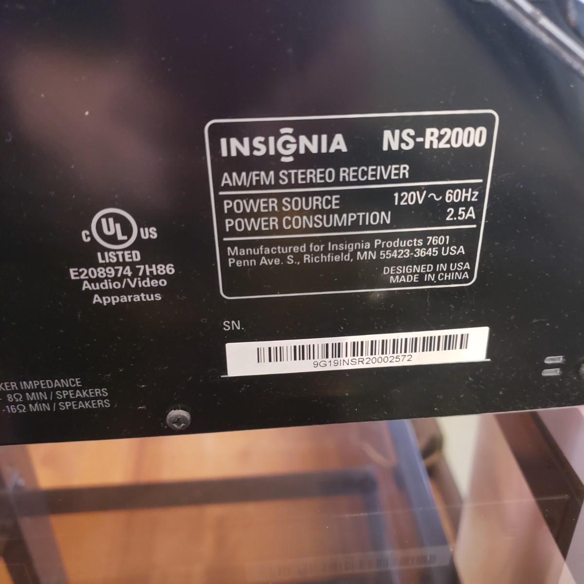 This Insignia NS-R2000 receiver measures 17" x 13" x 6"H. The unit powered on when plugged in. This comes with a set of KLH speakers that also worked when plugged in. See pictures for model and back panel information.