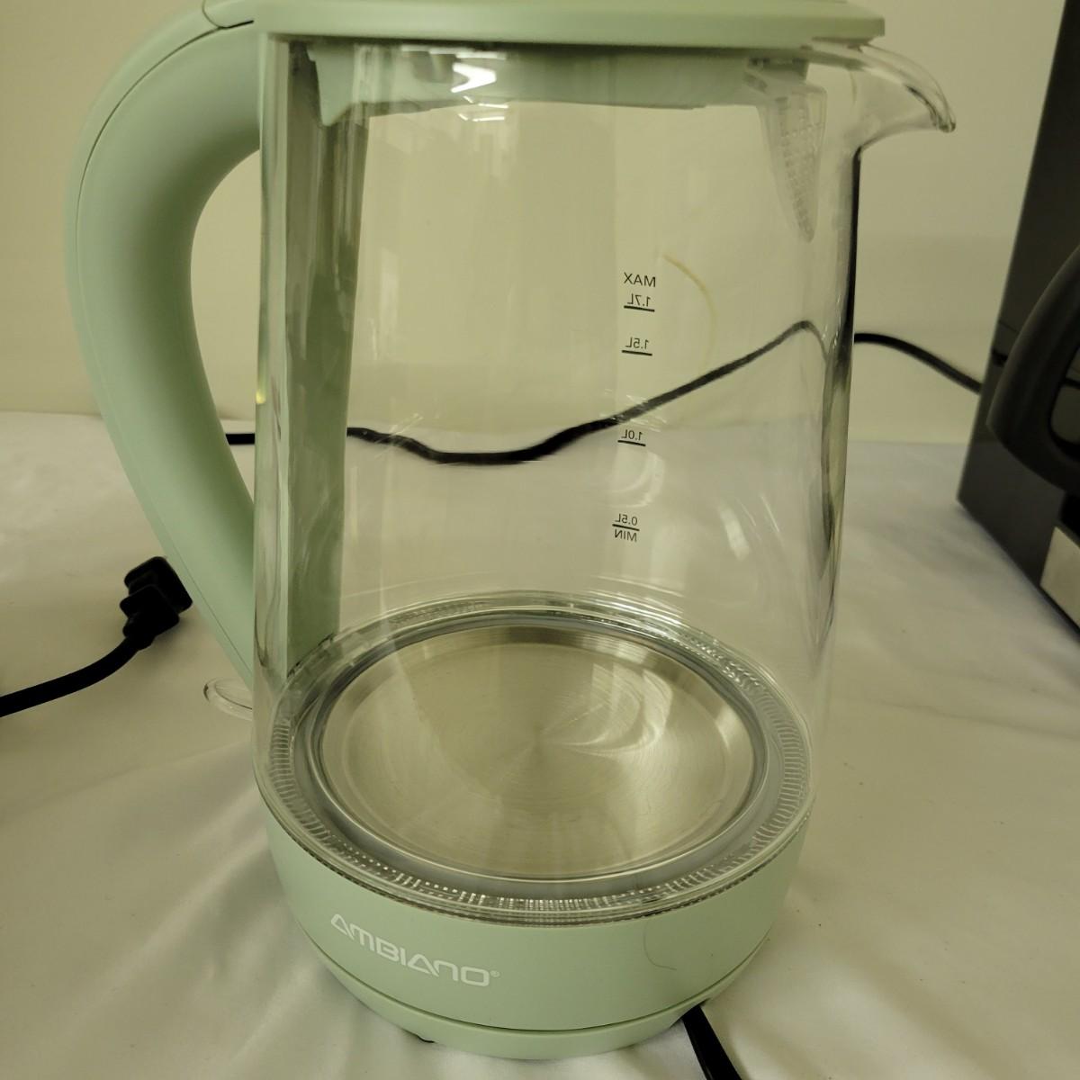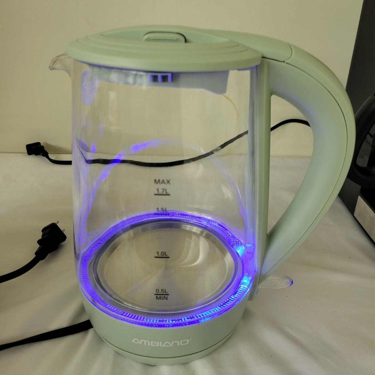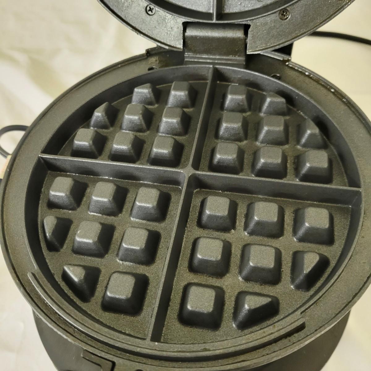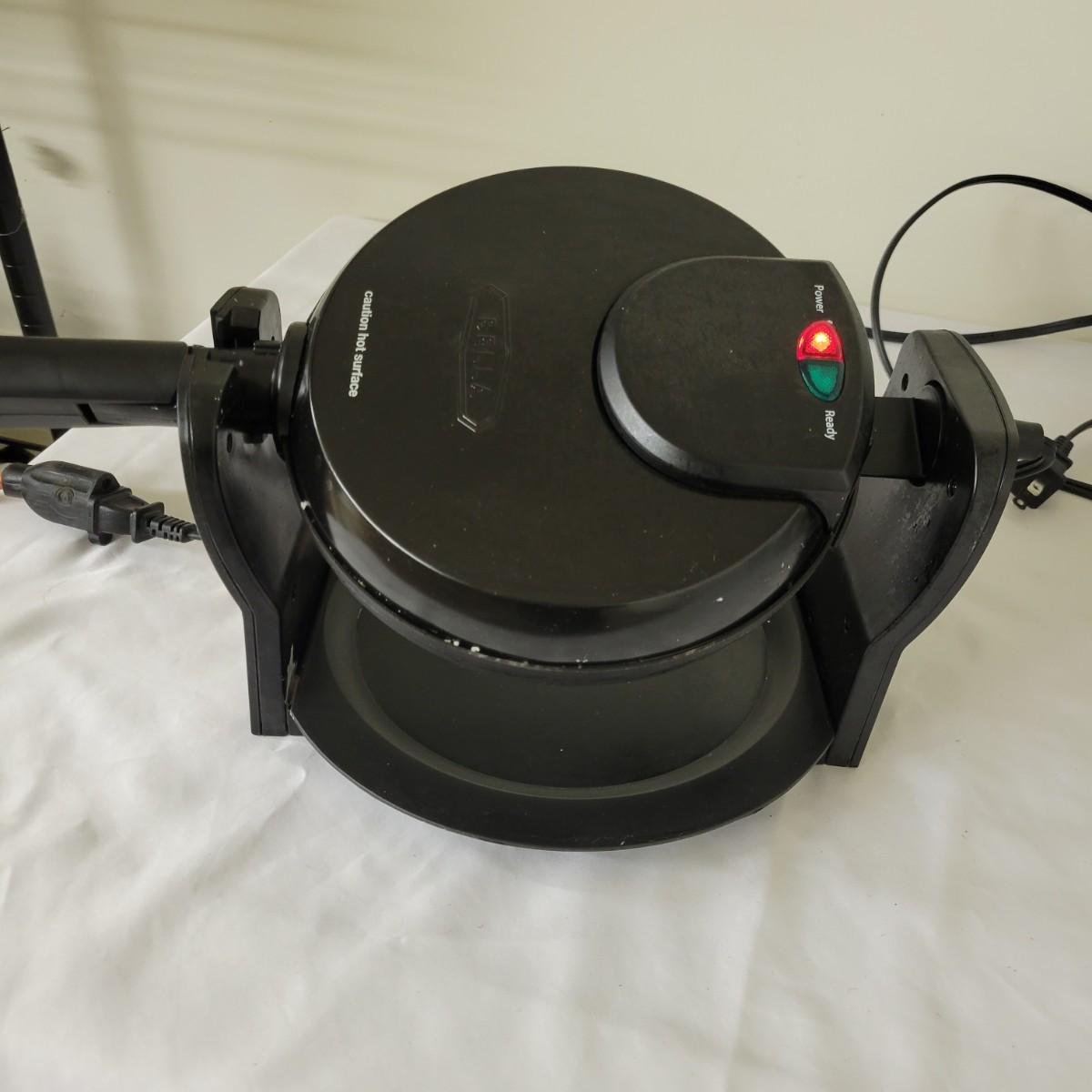 A lot of kitchen countertop appliances that all powered on when plugged in. Included as an Instant Pot that measures approximately 12"D x 12"H. A Sensio rotating Belgium waffle maker that is 8"D, an Ambiano electric kettle and Mr. Coffee coffee pot. Local pick up only.