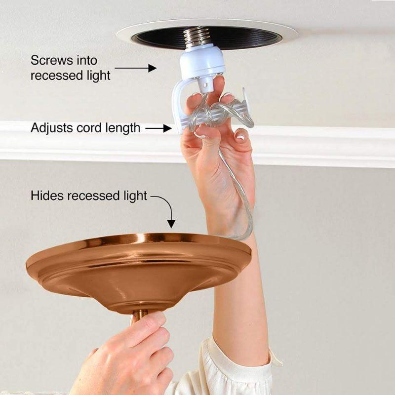 Instant Pendant Recessed Light Conversion Kit, Geometric Clear Glass Shade - New