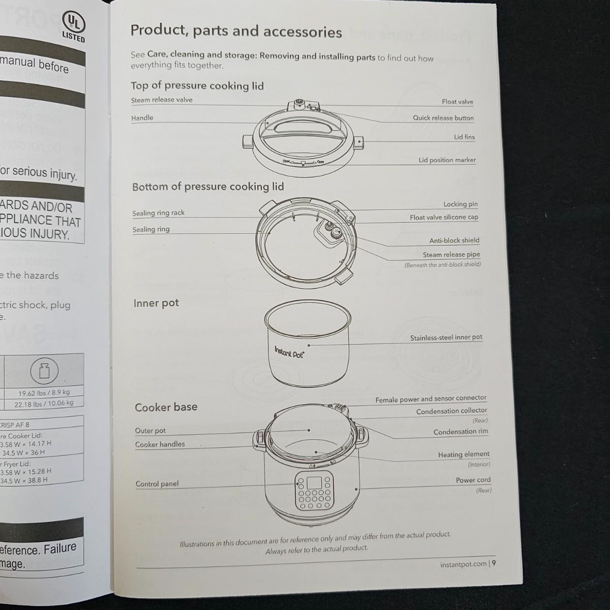 Combination Instant Pot cooker and air fryer with two different top lids and other accessories. Items appear to be NIB and unused. Instruction manual and original box included. Unit powered on when plugged in. See photos for details. Shipping available.