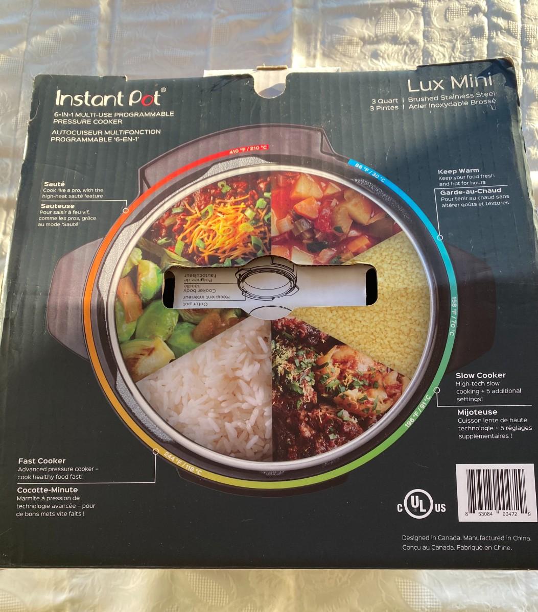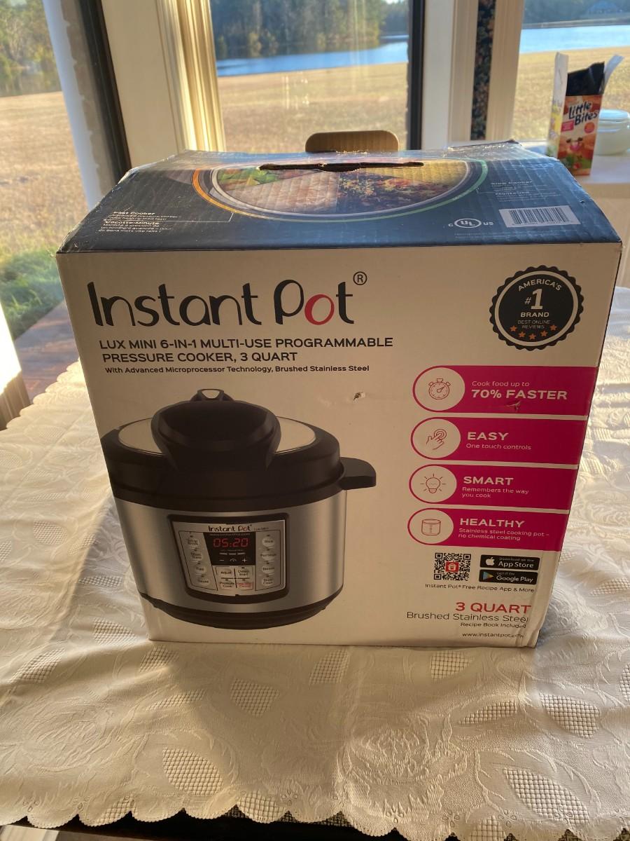 Instant pot, new in box, 3 quart. Manuals and spoons included.