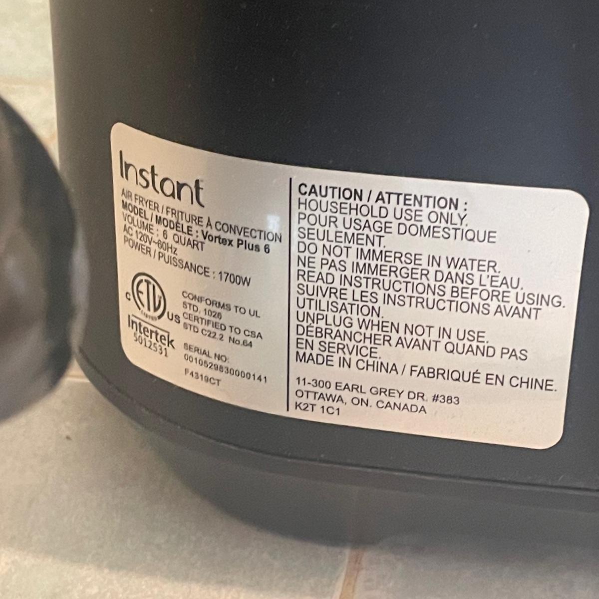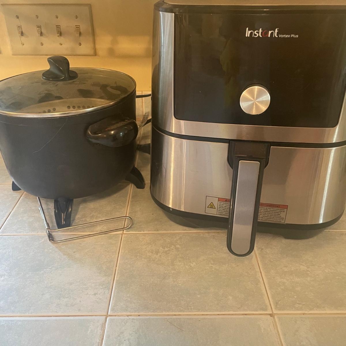 The air fryer is a 6 qt. Instant Vortex Plus. It needs a good clean. The air fryer powered on when plugged in as did the Presto fryer. See images for model numbers.