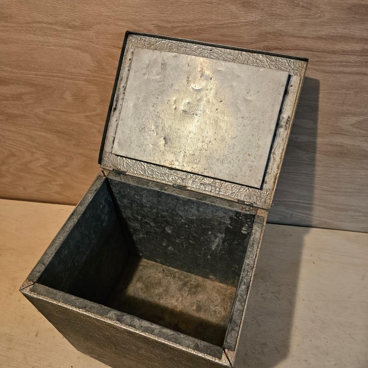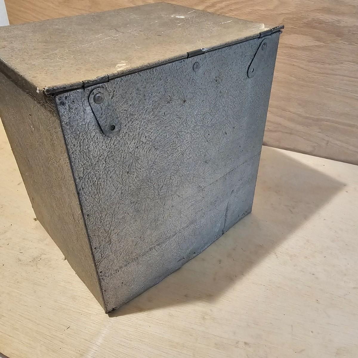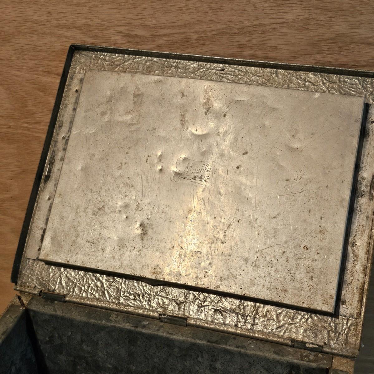 Remember when milk used to get delivered? Well, this is one of those containers that it would be placed in to stay cool. Aluminum clad with insulated top and walls by the Muckle Mfg. Co this vintage piece measures 12.5" x 10" x 13"H. Top lid lifts up to open. Some rust and wear and tear, see photos for details. Shipping available.