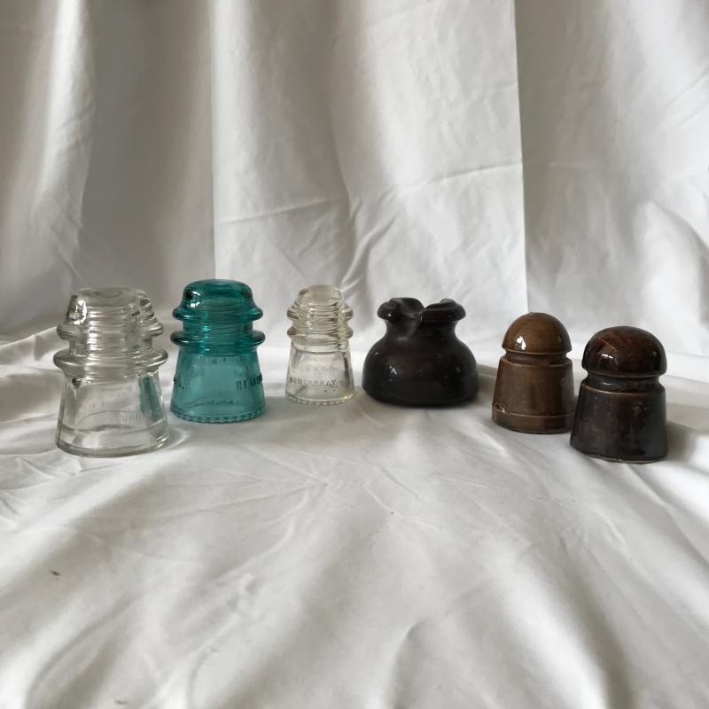 Lot contains 6 insulators, 3 glass, 3 ceramic. Shipping available or local pickup in Hendersonville, NC.
