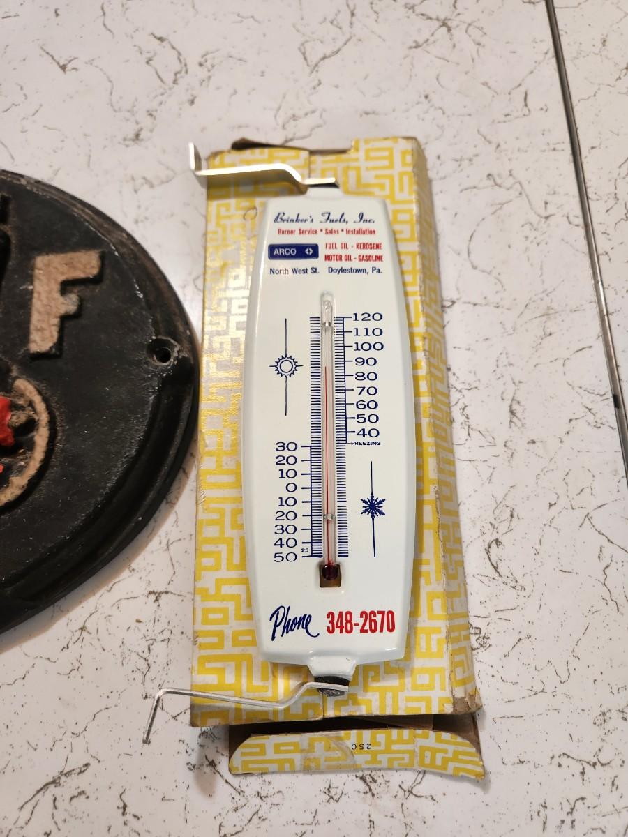 Vintage United Fireman Insurance Plaque Brinker's Fuels Doylestown Pa. Thermometer