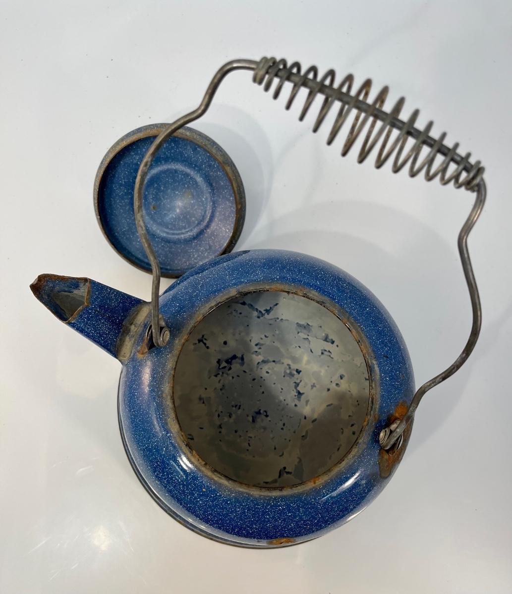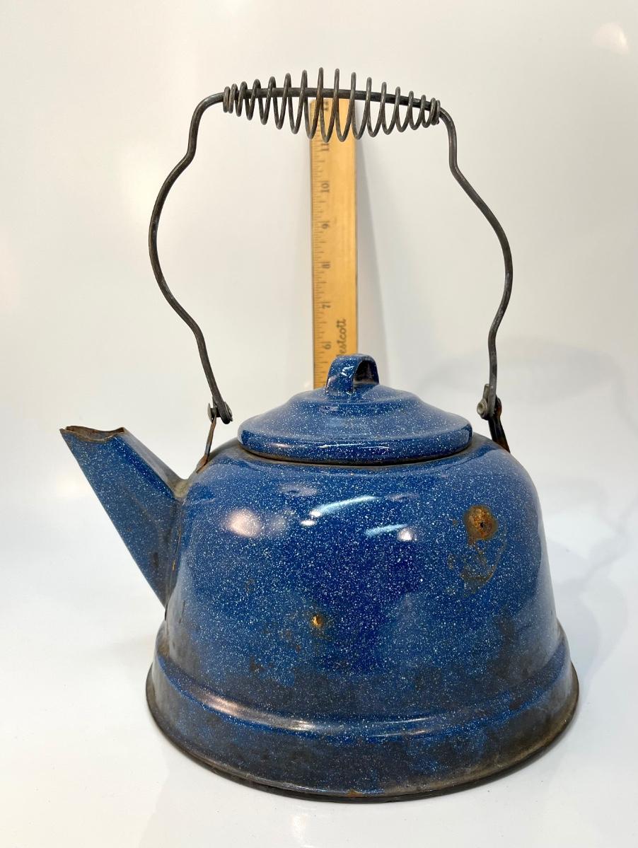 intage blue enamel teapot, vintage teapot, vintage teapot, blue speckled enamelware teapot, vintage speckled blue enamel teapot, teapot