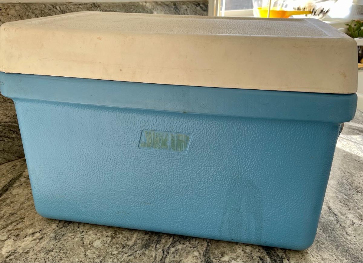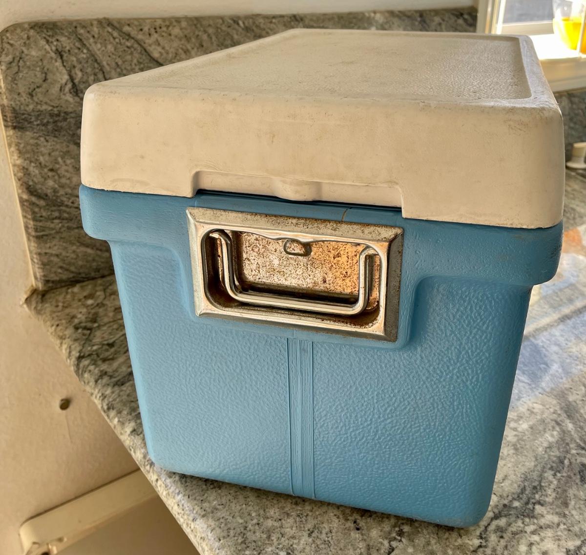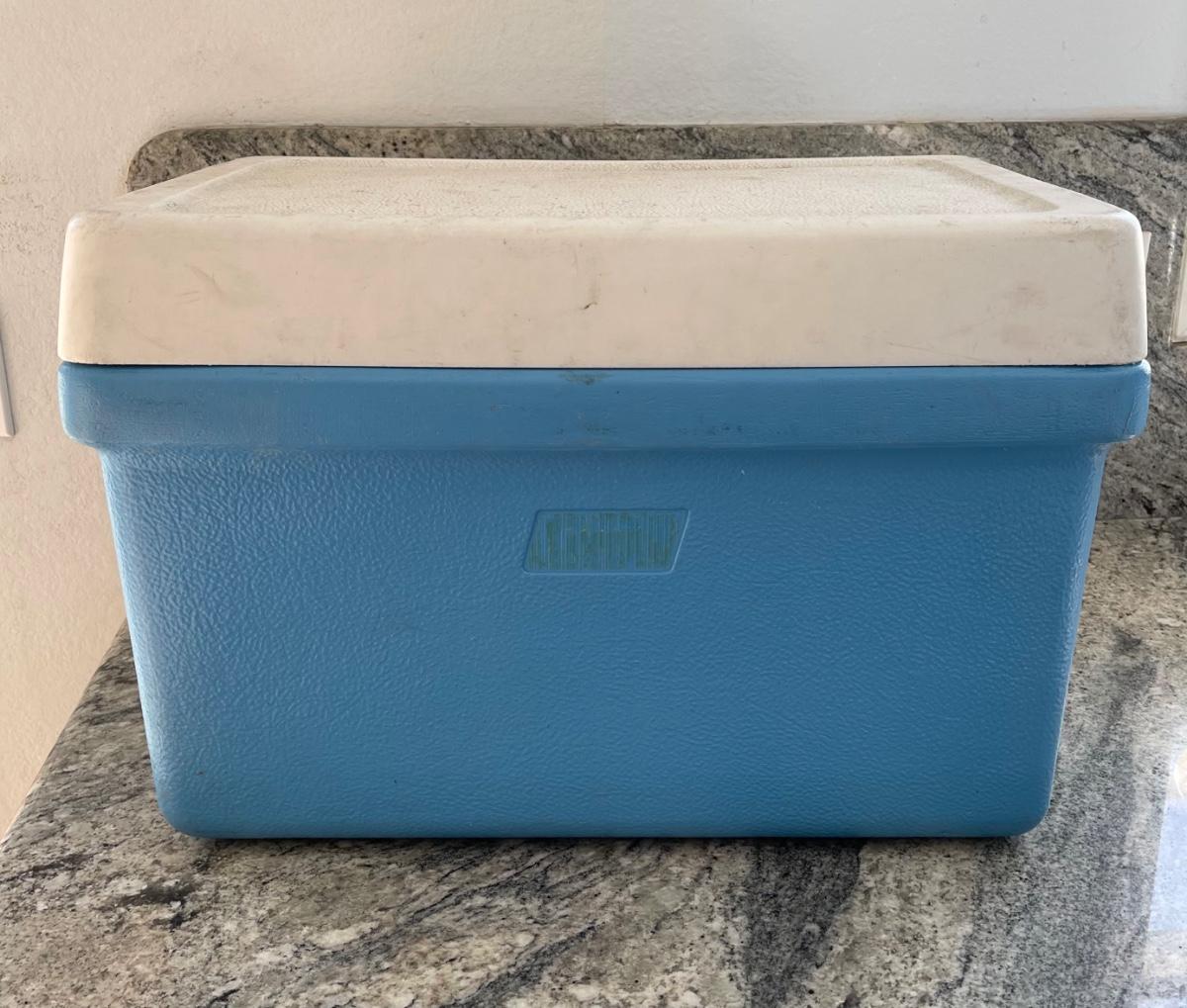Vintage cooler in fair condition. This is a Coleman cooler, but it’s missing its labels. Measures 20 x 14 x 12 inches.