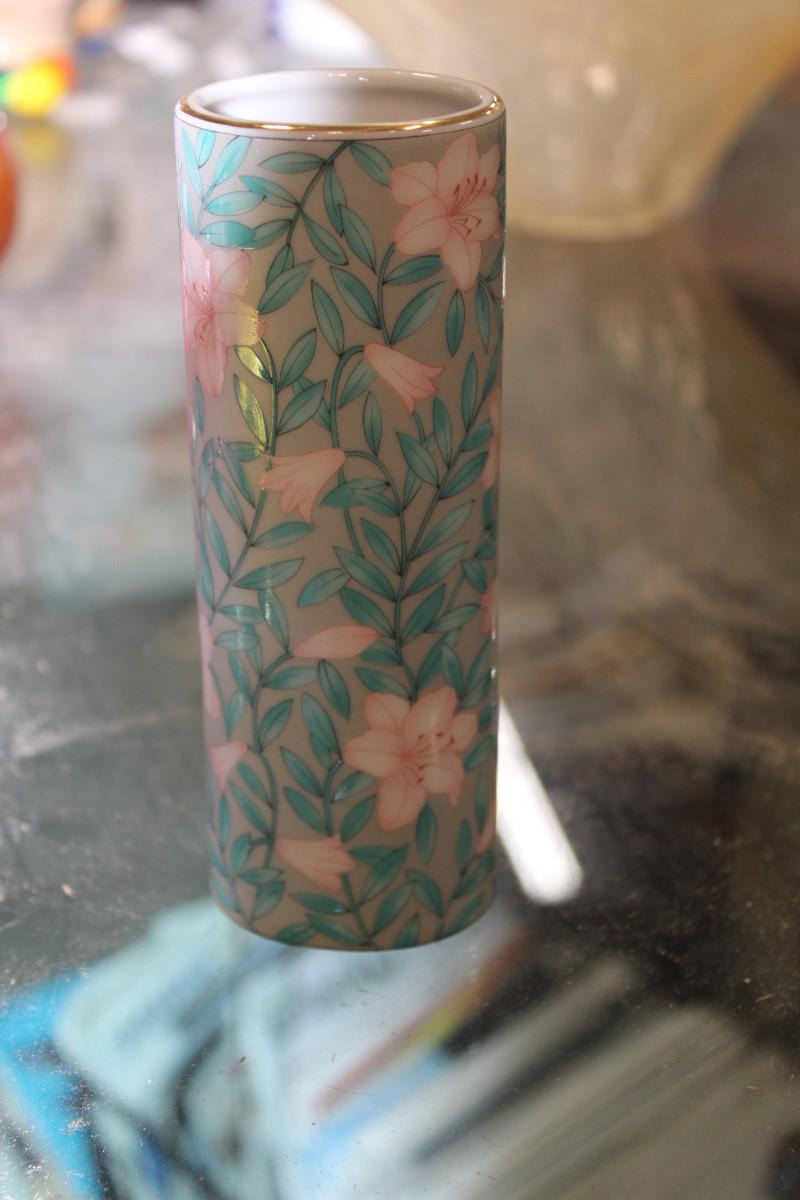 intage Otagiri Japan “Serenade” Vase Teal Pink Floral Gold Rim 8.75”intage Otagiri Japan “Serenade” Vase Teal Pink Floral Gold Rim 8.75”