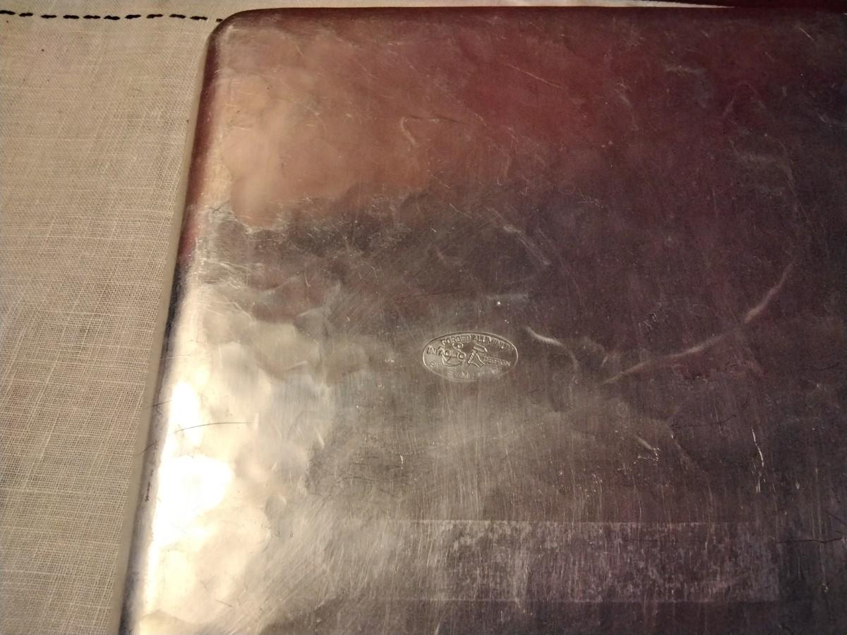 Measures 14 1/4" Long, and 9" Wide. Marked 'Forged Aluminum Intaglio Design By E.M.P.C.'. Item is in pristine condition.