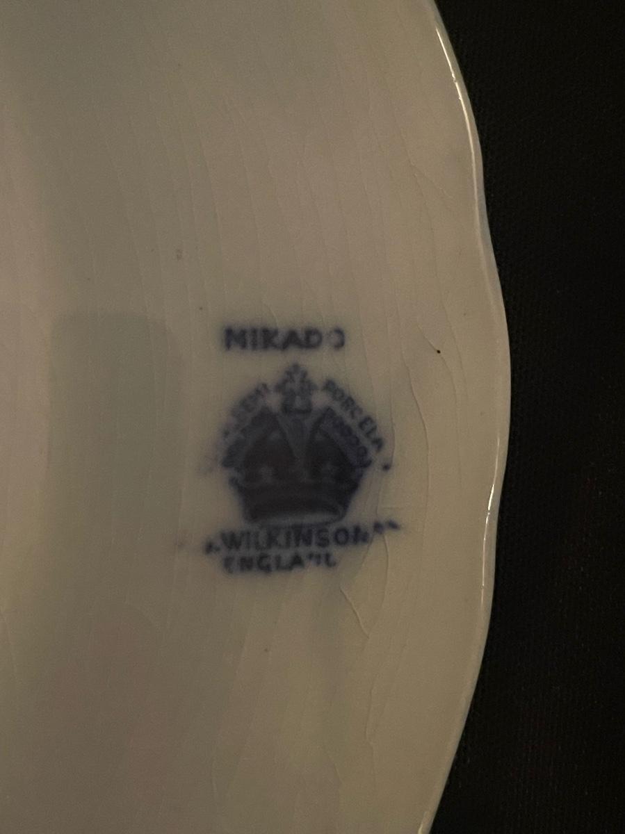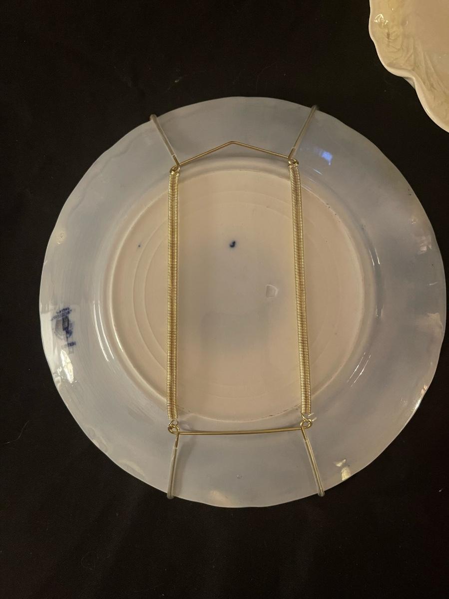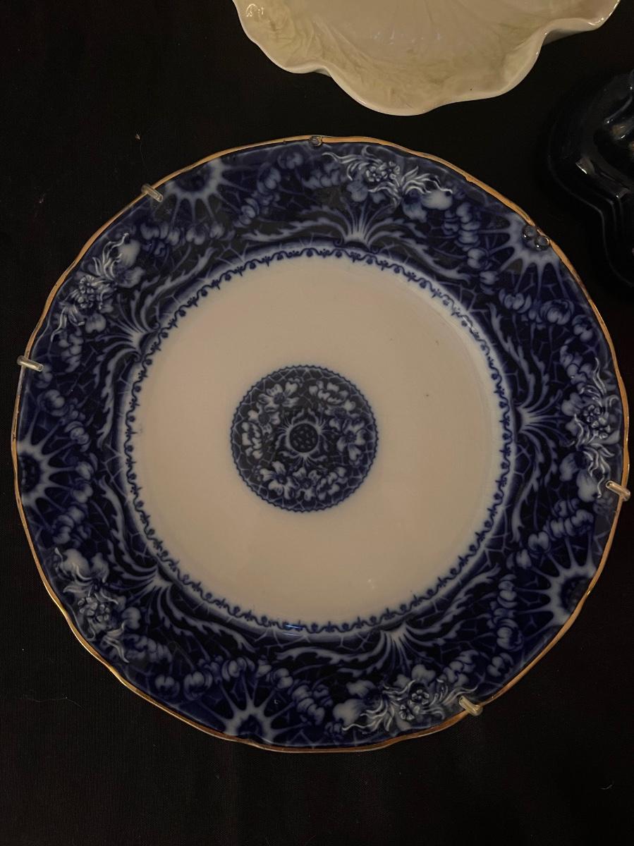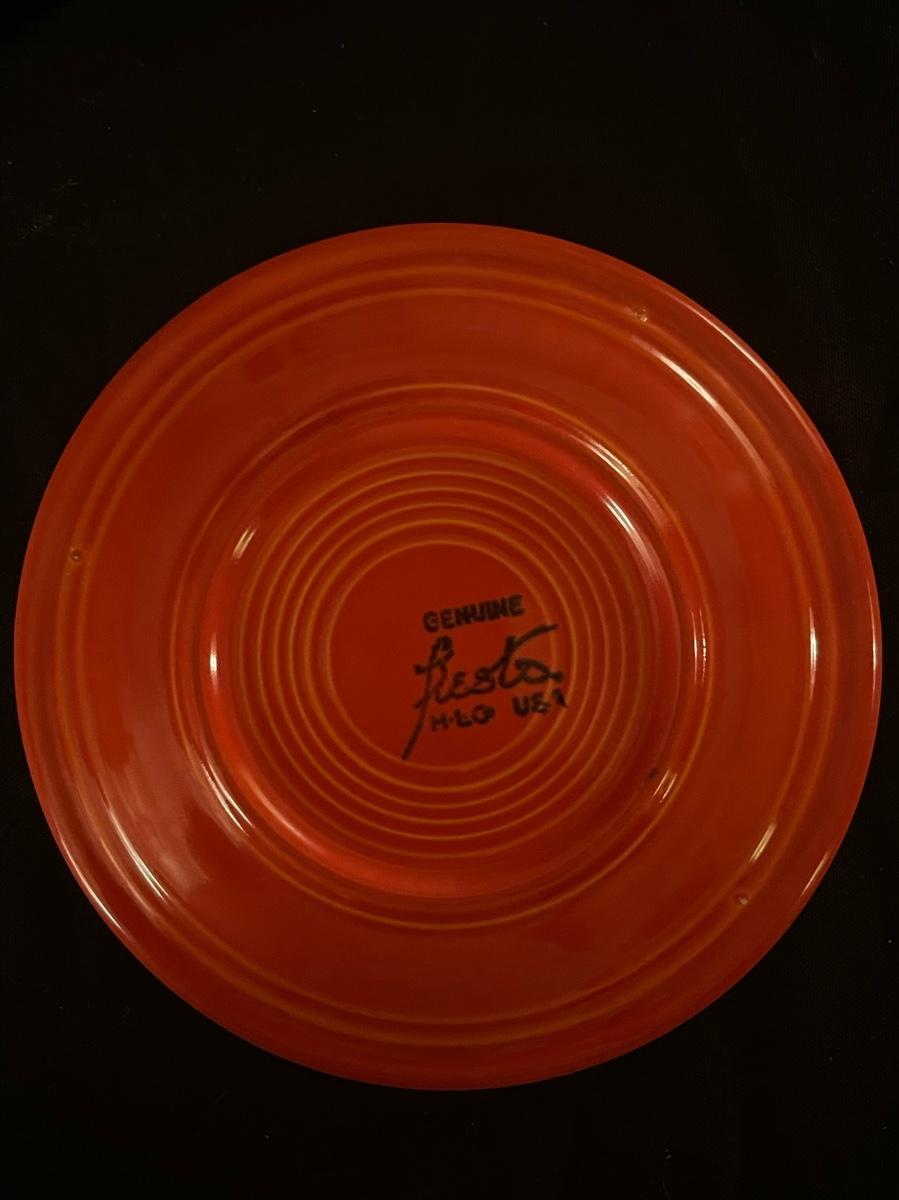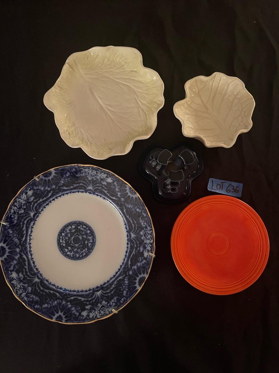 (2) pieces Intaglio ware by "The Guild -Caabbage Plates", (2) pieces Fiesta ware (1) orange, (1) blue, Mikado "Wilkinson" England porcelain plate with hanger.