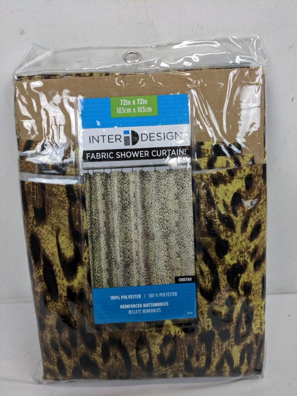 Interdesign Fabric Shower Curtain, Cheetah, 72" x 72" - New
