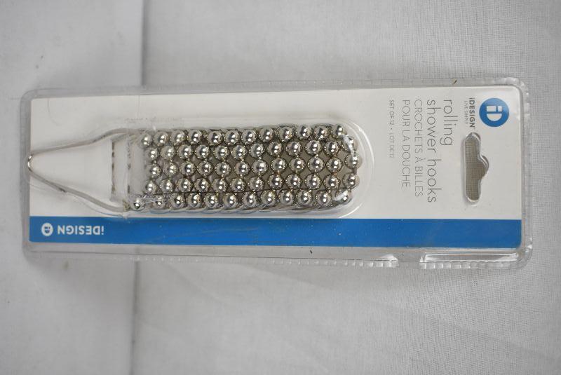 InterDesign Rolling Shower Curtain Hooks, Set of 12, Slightly Open - New