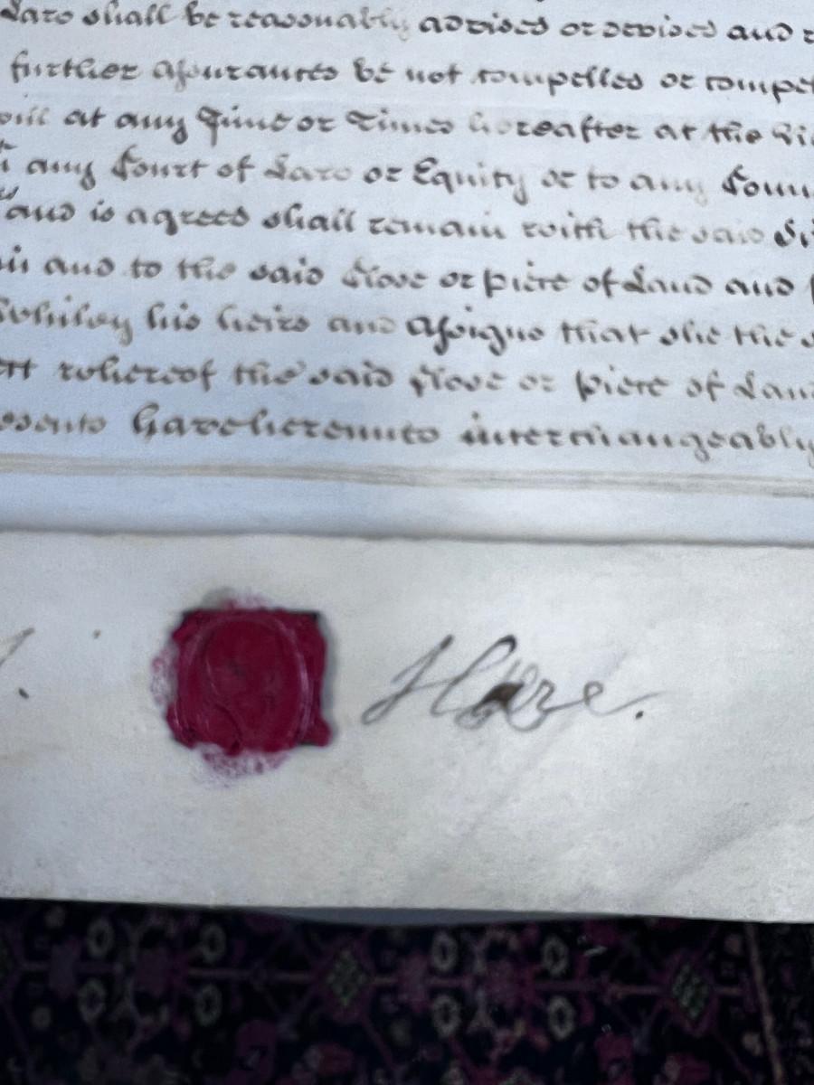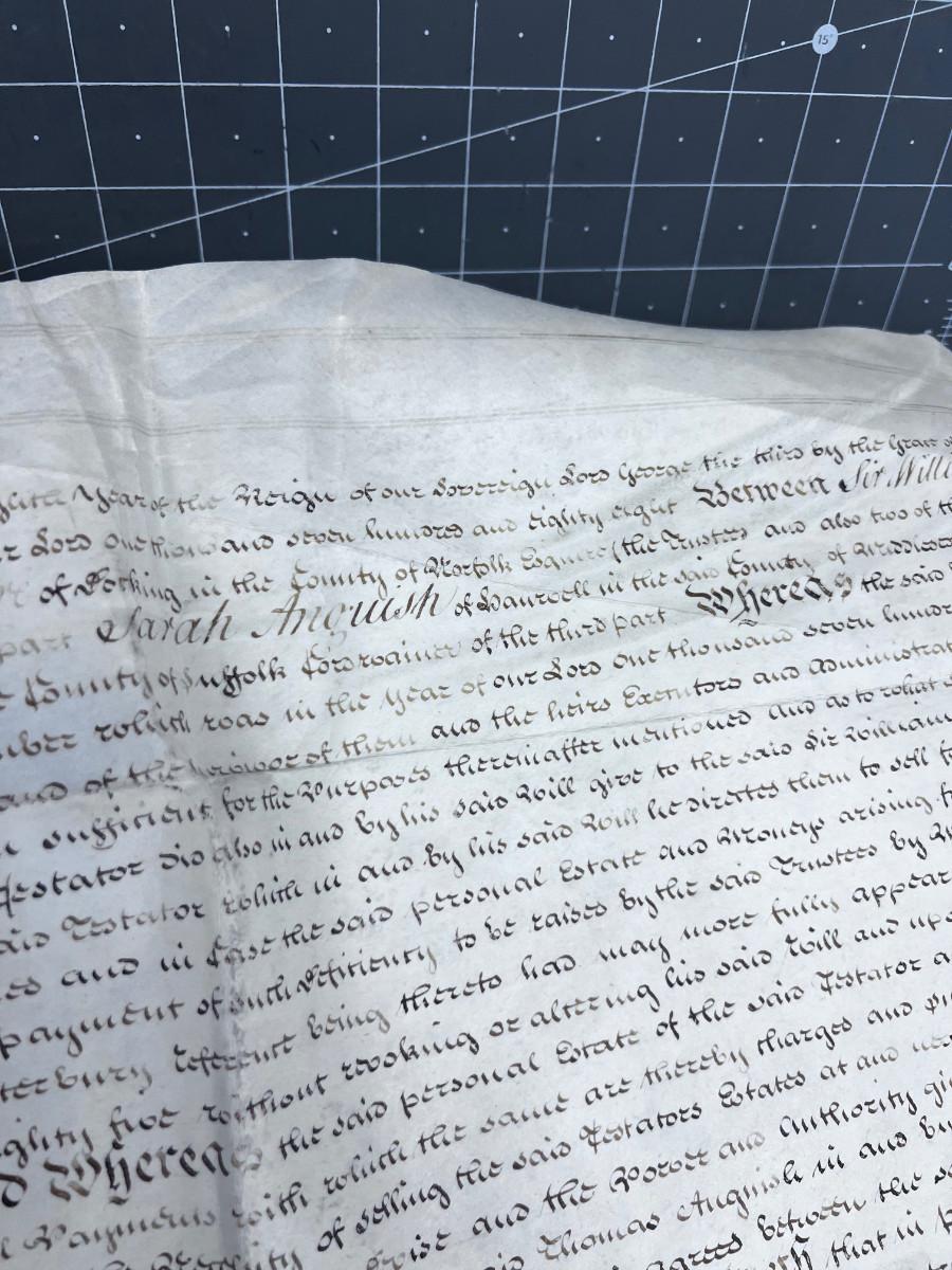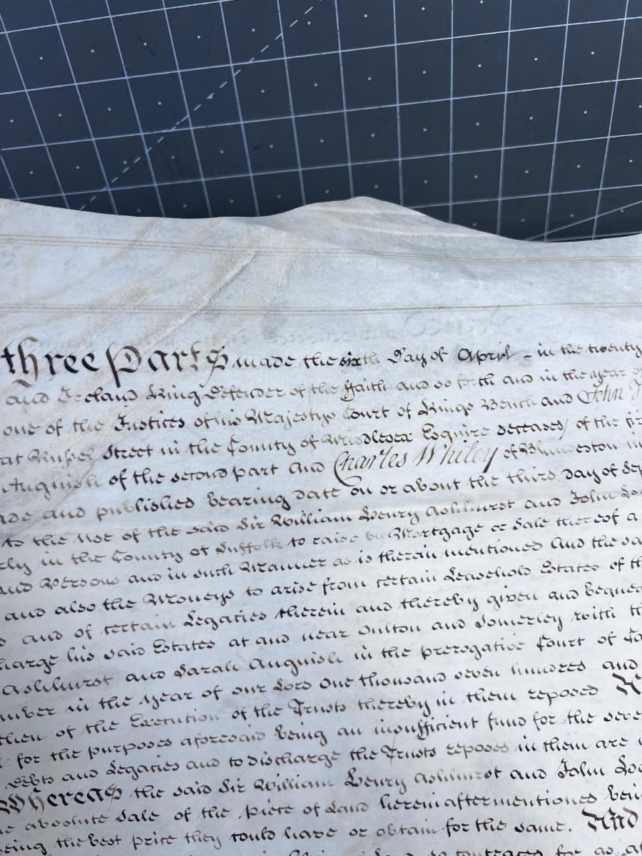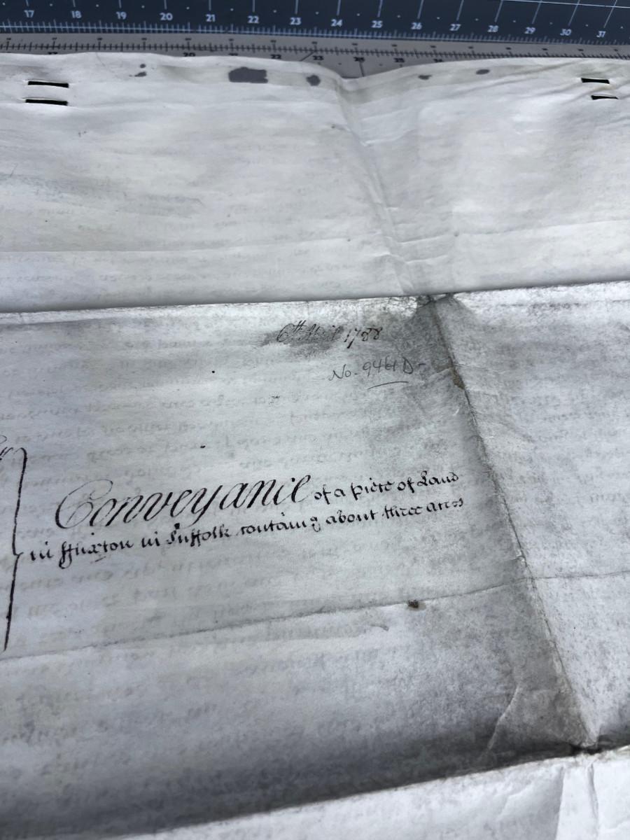 Letter of Indenture. Printed on Calf Skin Velum. Measures 34" X 26" Probably Sew in a book at one time. Has holes on the edge from binding and tape on the back.