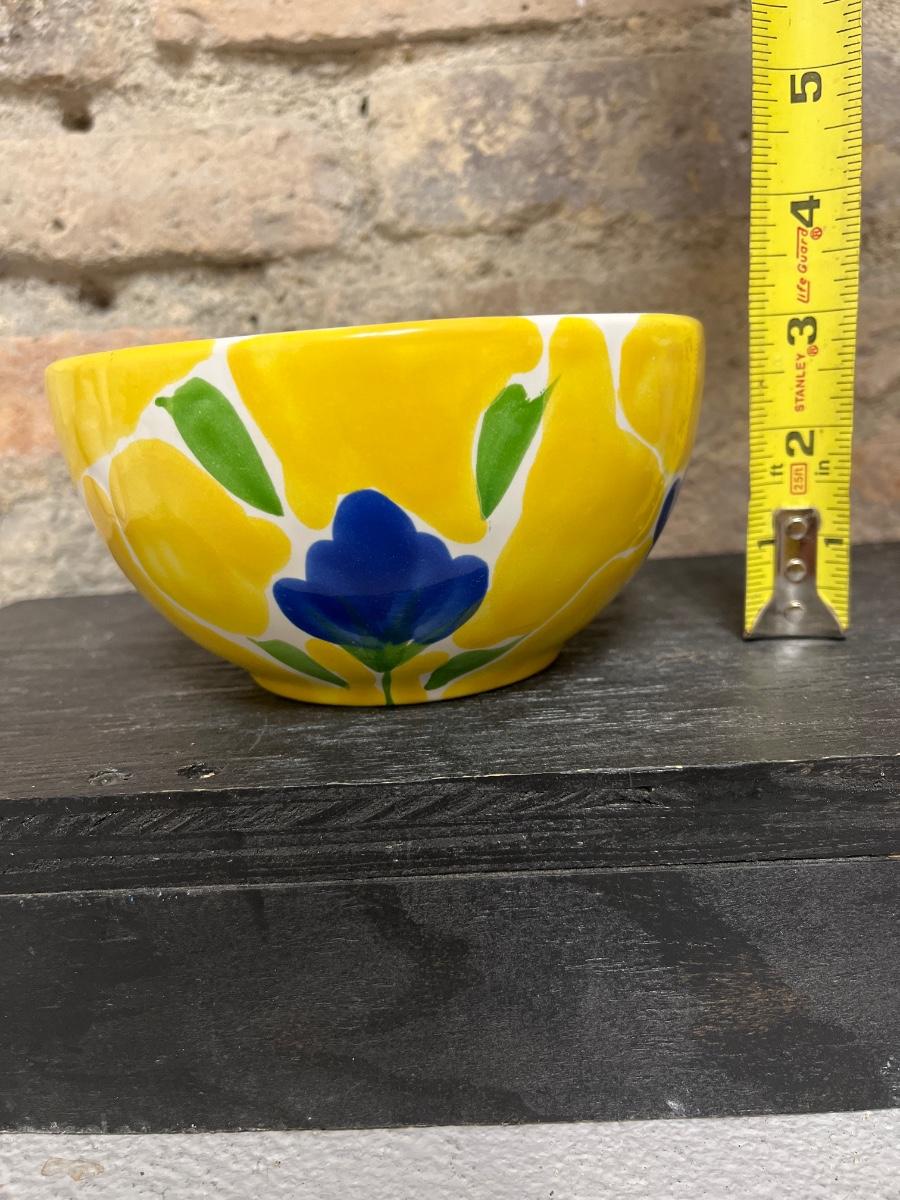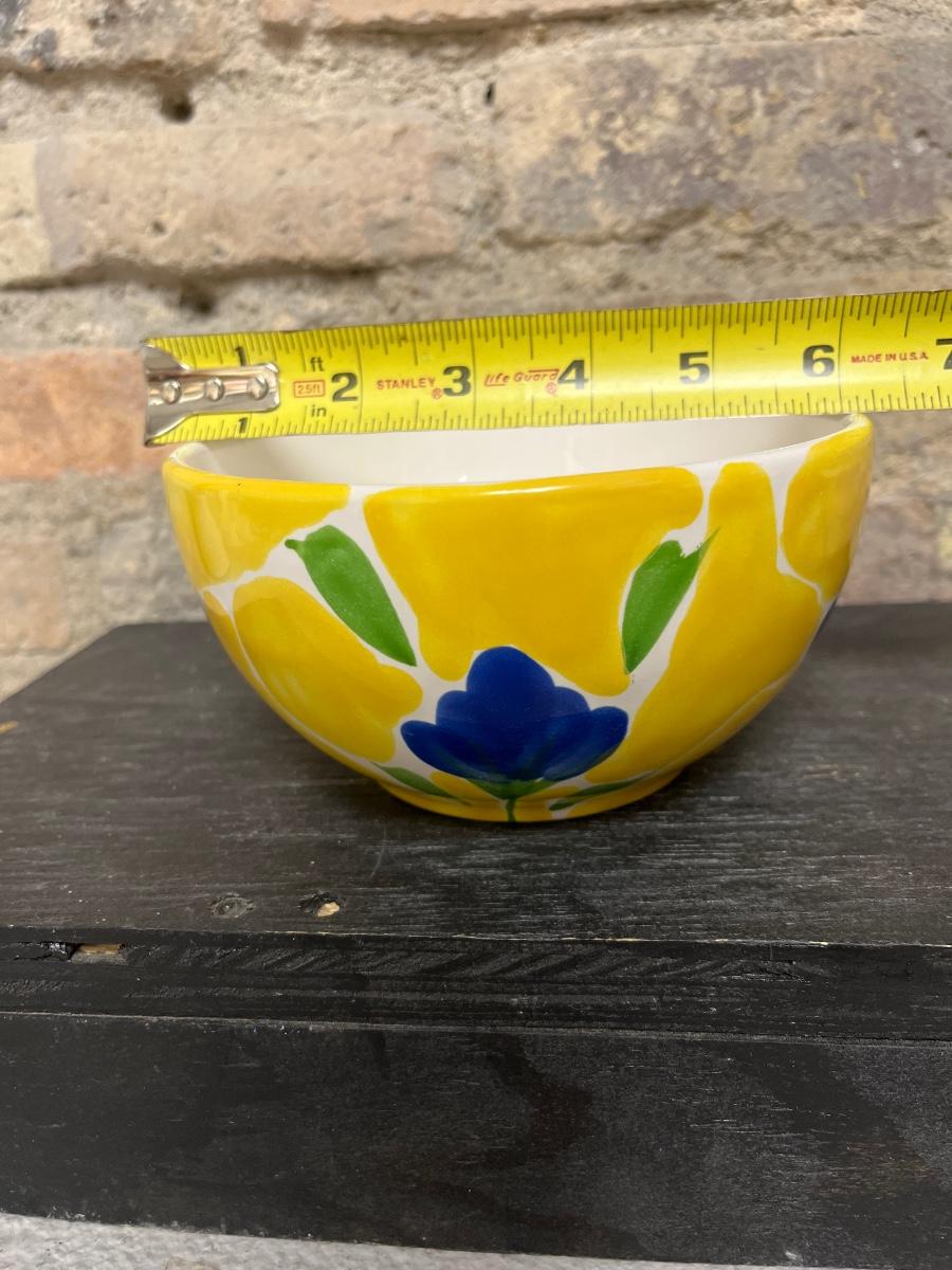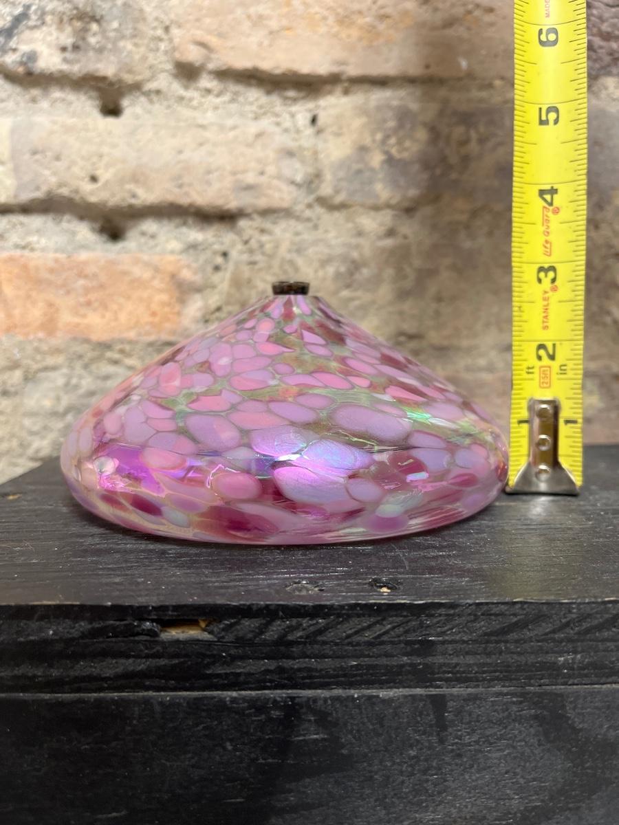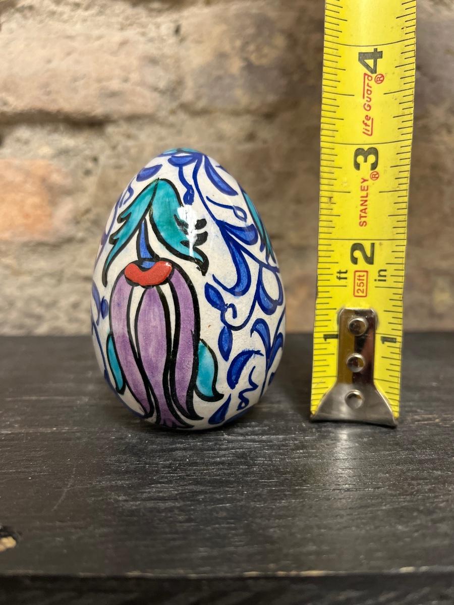 Cristal Au Plomb lion from their Wonders of the Wild collection, pink blown glass oil lamp, polychrome egg, walnut turned bowl, yellow and blue Dansk bowl, and white & blue pitcher