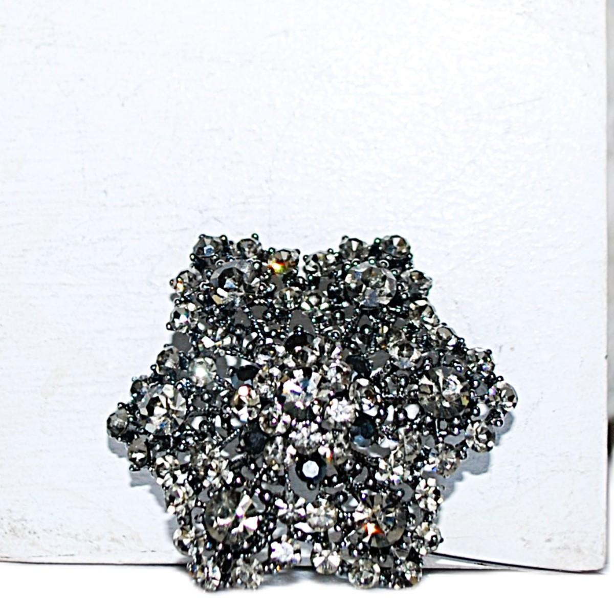 Interesting Indented GRAY Stones Floral Spray BROOCH (2" Diam.) with BRANCH Style Silver Tone Setting