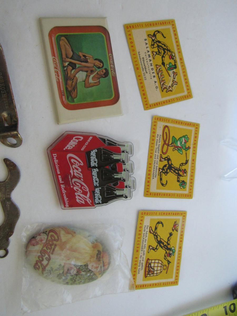 Interesting Lot of Vintage Advertising Items: Salamander Shoes/Germany, Coca Cola Mirrors, Openers