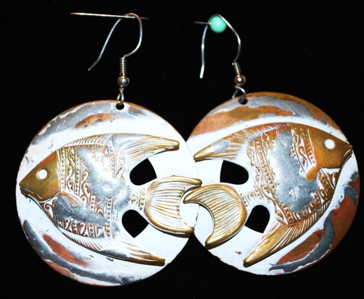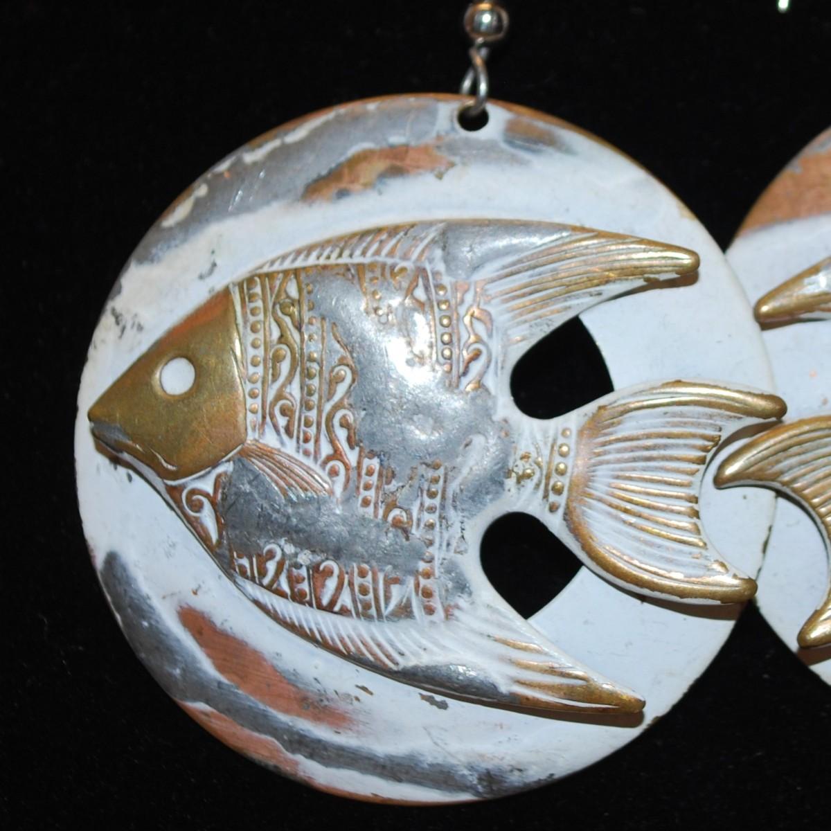 Interesting Styled Round Angelfish Earrings Set 1¾" Diam.