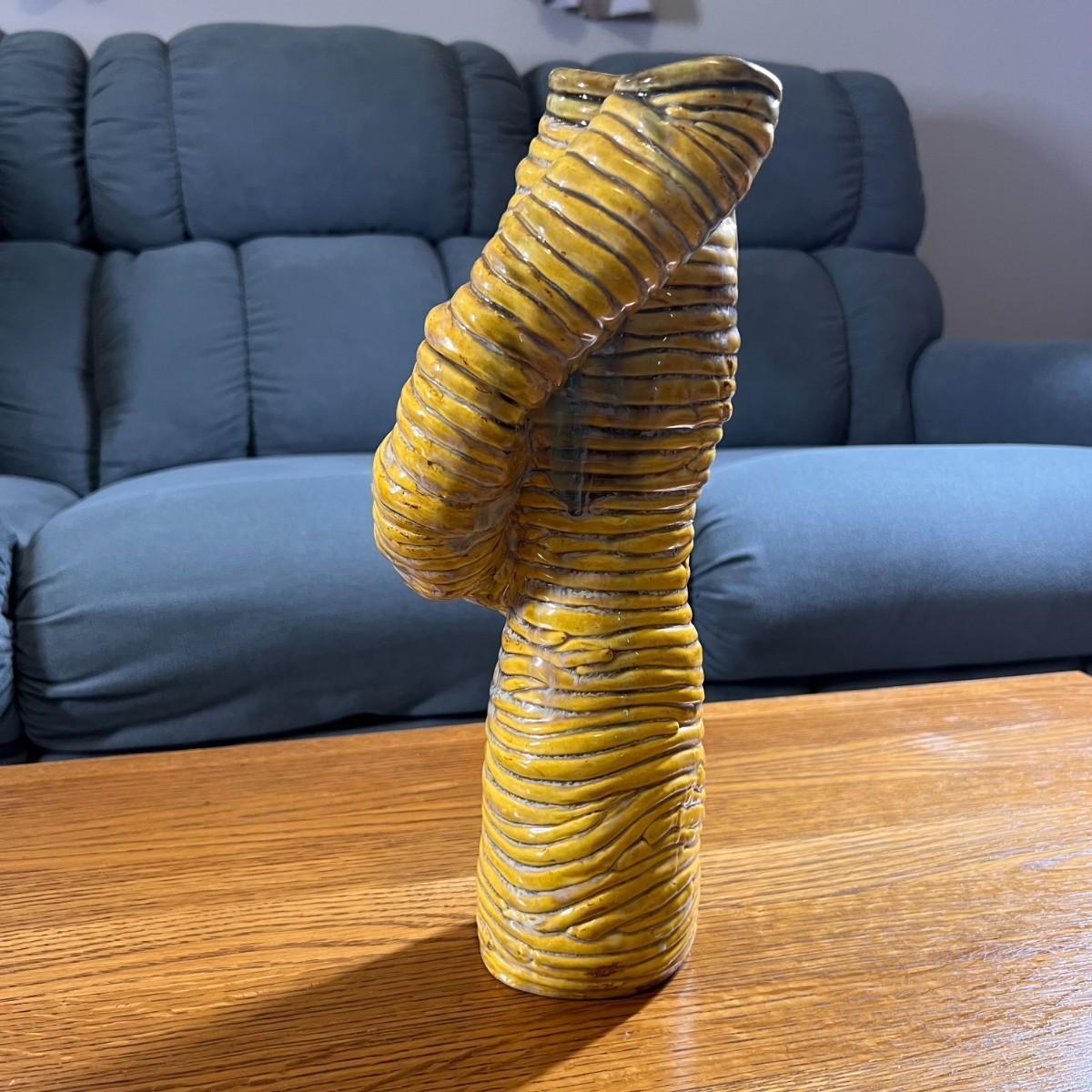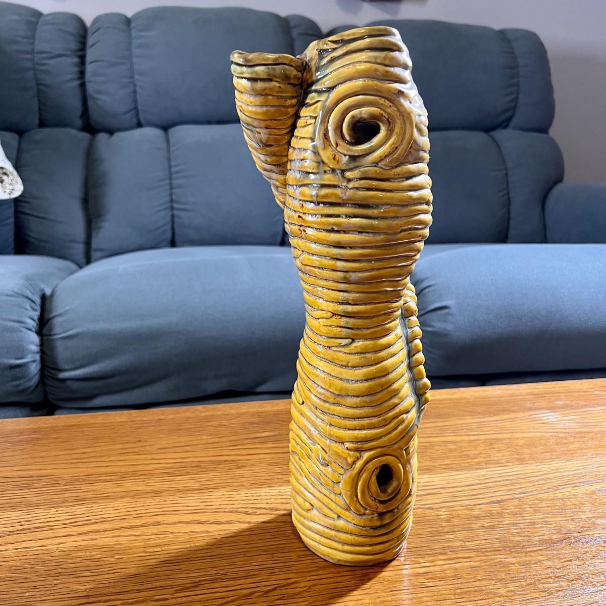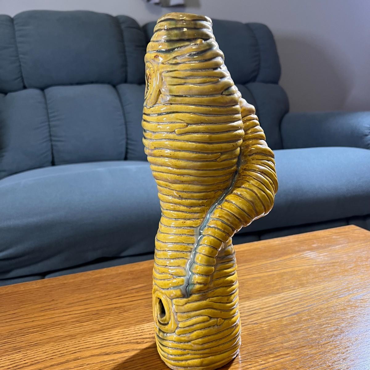 15" tall x 5" at widest point. Yellow and blue gray coloring.