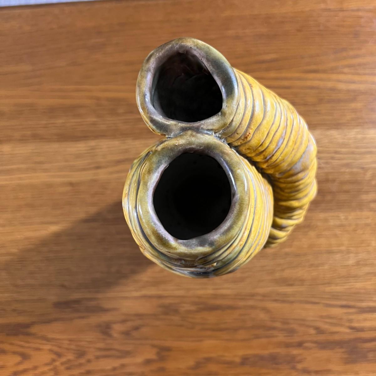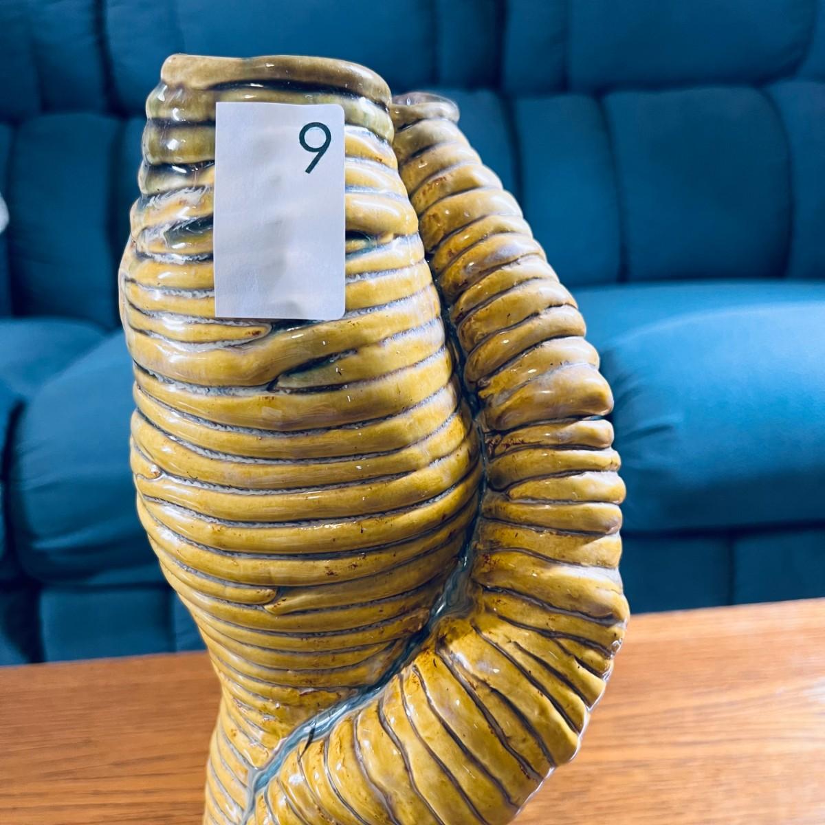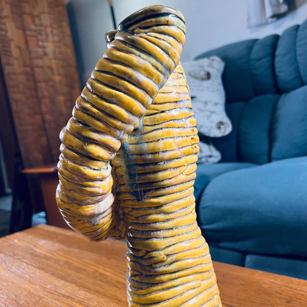 15" tall x 5" at widest point. Yellow and blue gray coloring.