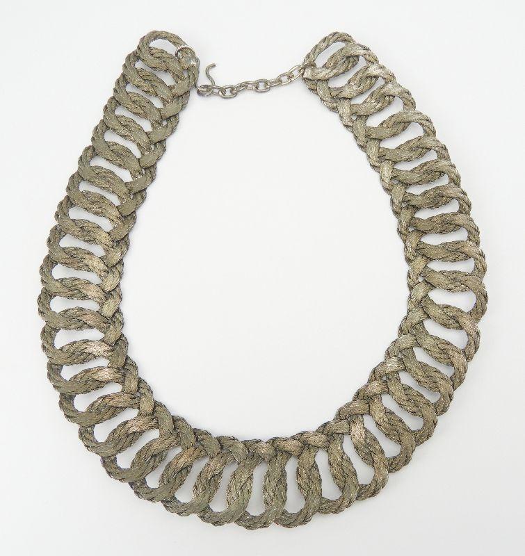 This necklace measures 18" in klength, and is 1 1/4" wide. As with all vintage jewelry, this item was previously owned. In most cases expect some wear associated with age. Please view pictures as they are part of the description, and ask questions before bidding. Thank you for visiting Aunt Ellie's Vintage Sales. Happy bidding and good luck!
