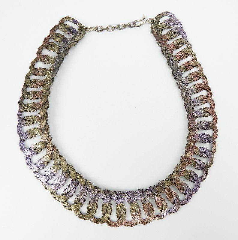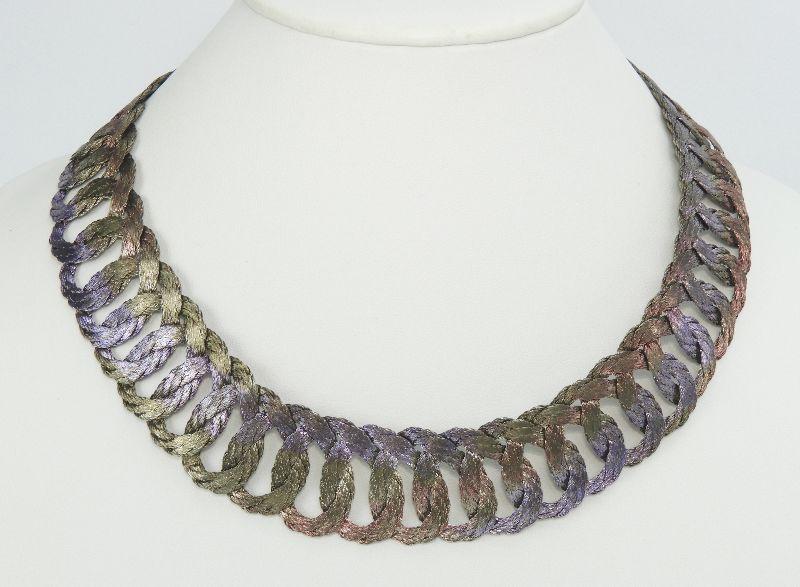 Interesting Wide Iridized Silver Tone Collar Necklace