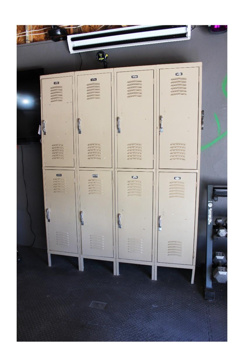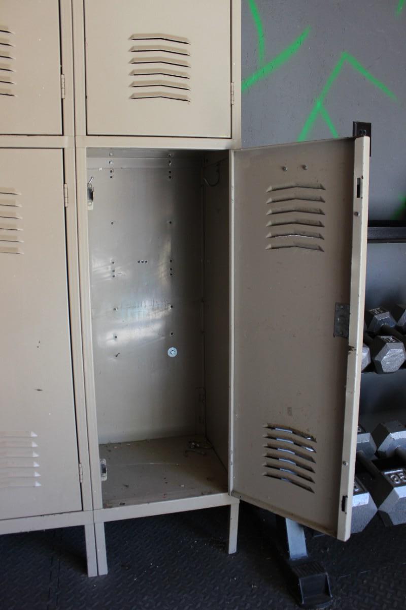 Interior Steel Equipment Co Metal School Lockers, there is no significant damage to any of the lockers or locking latches and is in good useable condition. Check pictures for more details and for sizing, measures to about 5 1/2 feet wide and 5 1/2 feet tall.