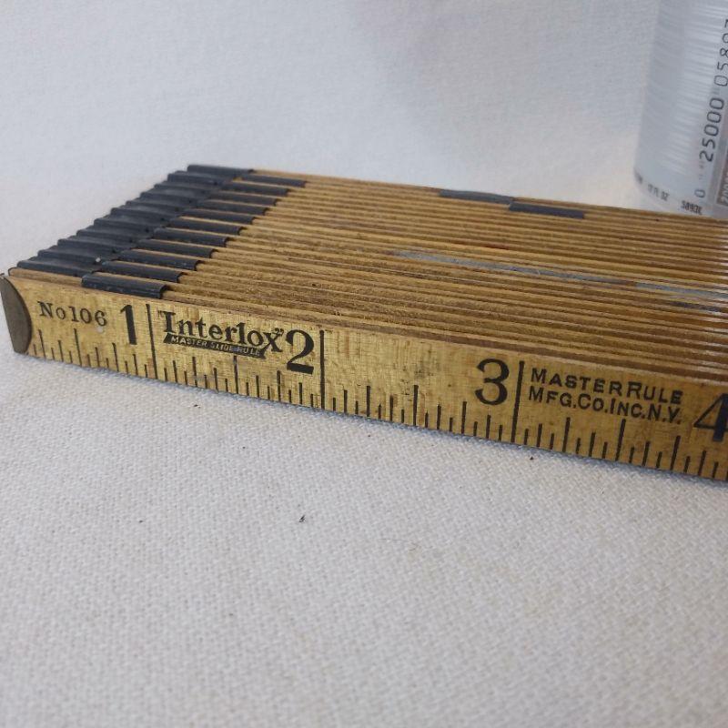 This item is a wooden ruler that "slides" instead of folding to open or close. It is made by Master Rule Mfg. Co., NY. Interlox #106. Really neat and in very good condition. What an unusual find.