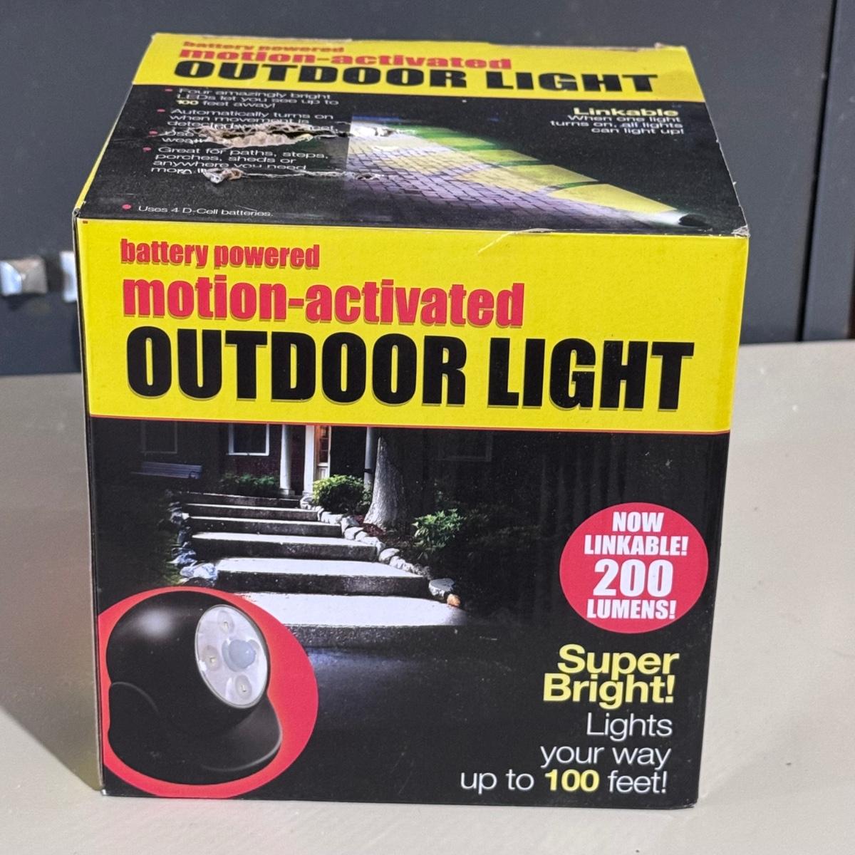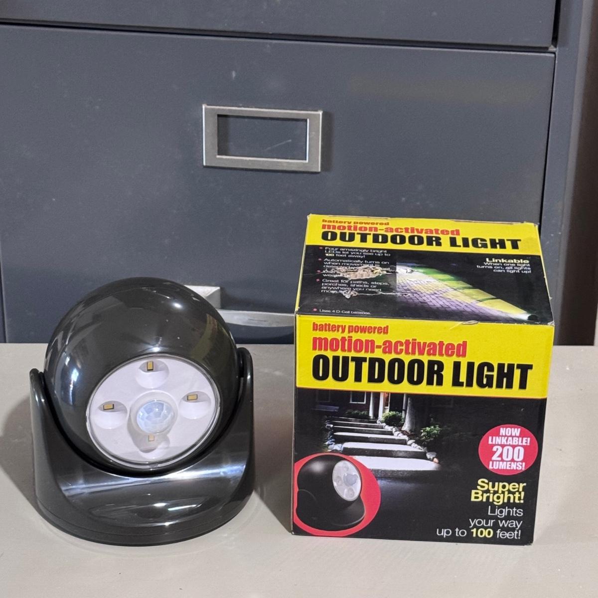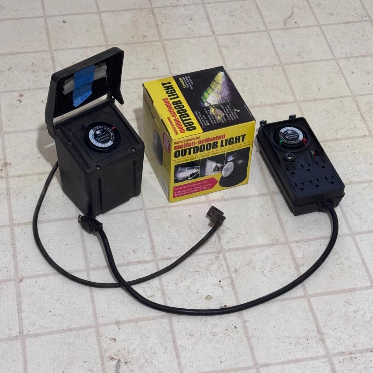 This lot includes two Intermatic low voltage power packs in various sizes and power. They both powered on when plugged in. See pictures for more details. It also includes one new-in-box battery powered motion-activated outdoor light. The light was not tested - it needs four D-Cell batteries to operate. It measures 6”D x 5”H. Shipping available.