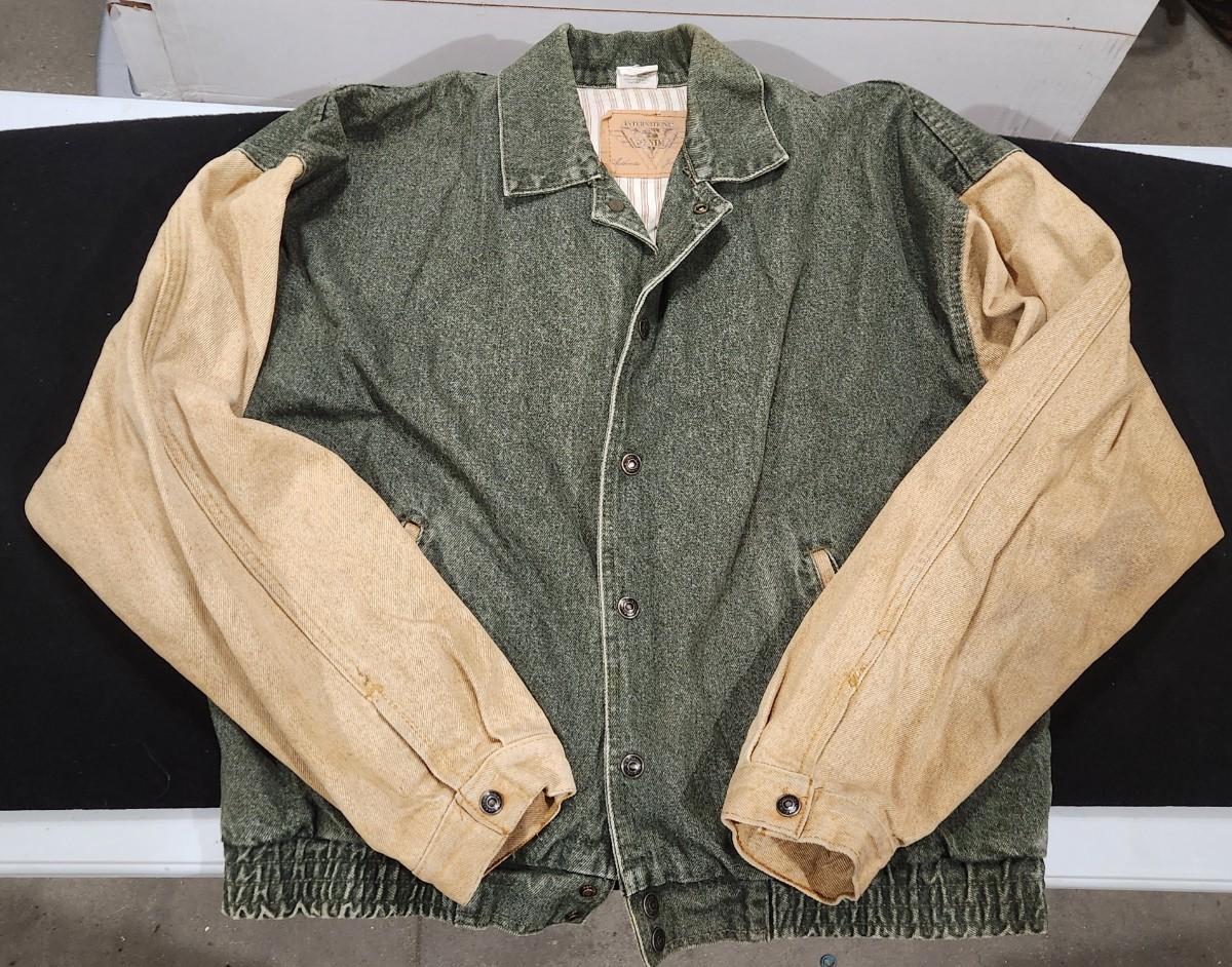 International Denim Vintage Varsity Size M Medium Retro Two Tone Snap Button Up Jacket