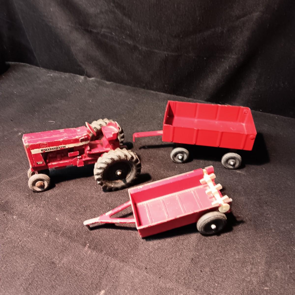 INTERNATIONAL FARMALL 656 TOY TRACTOR & 2 ERTL CARTS
