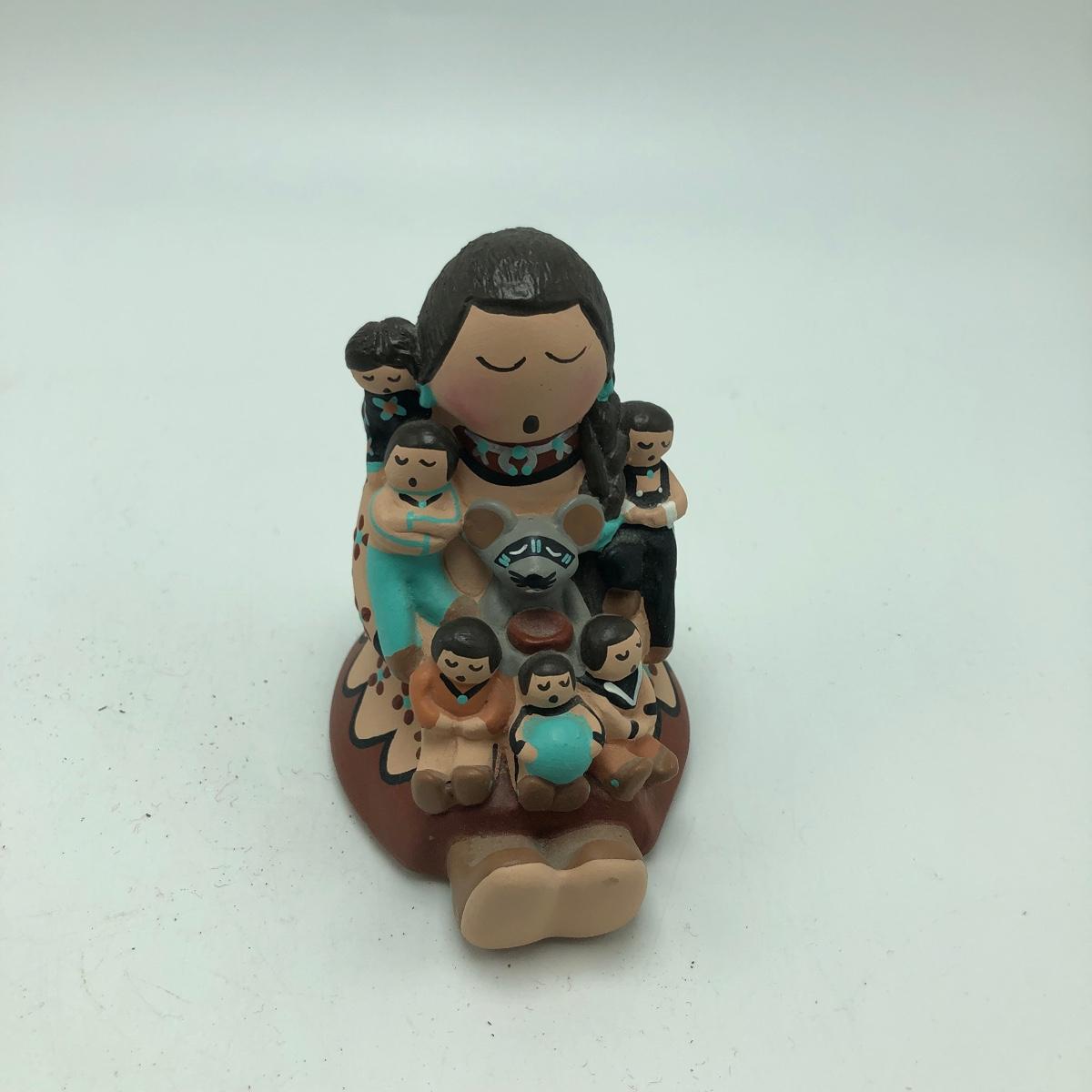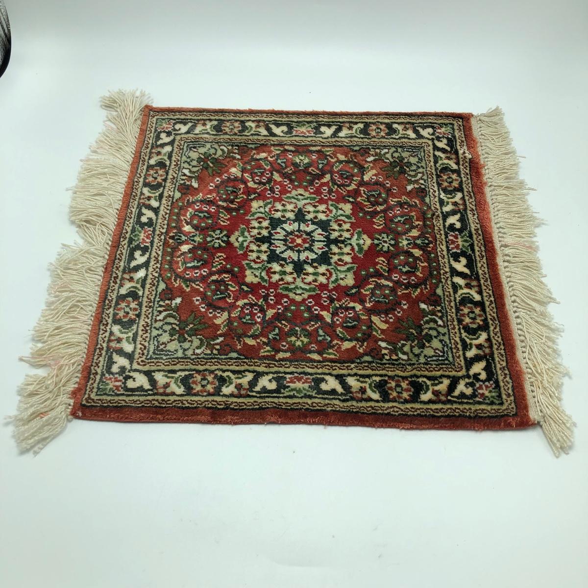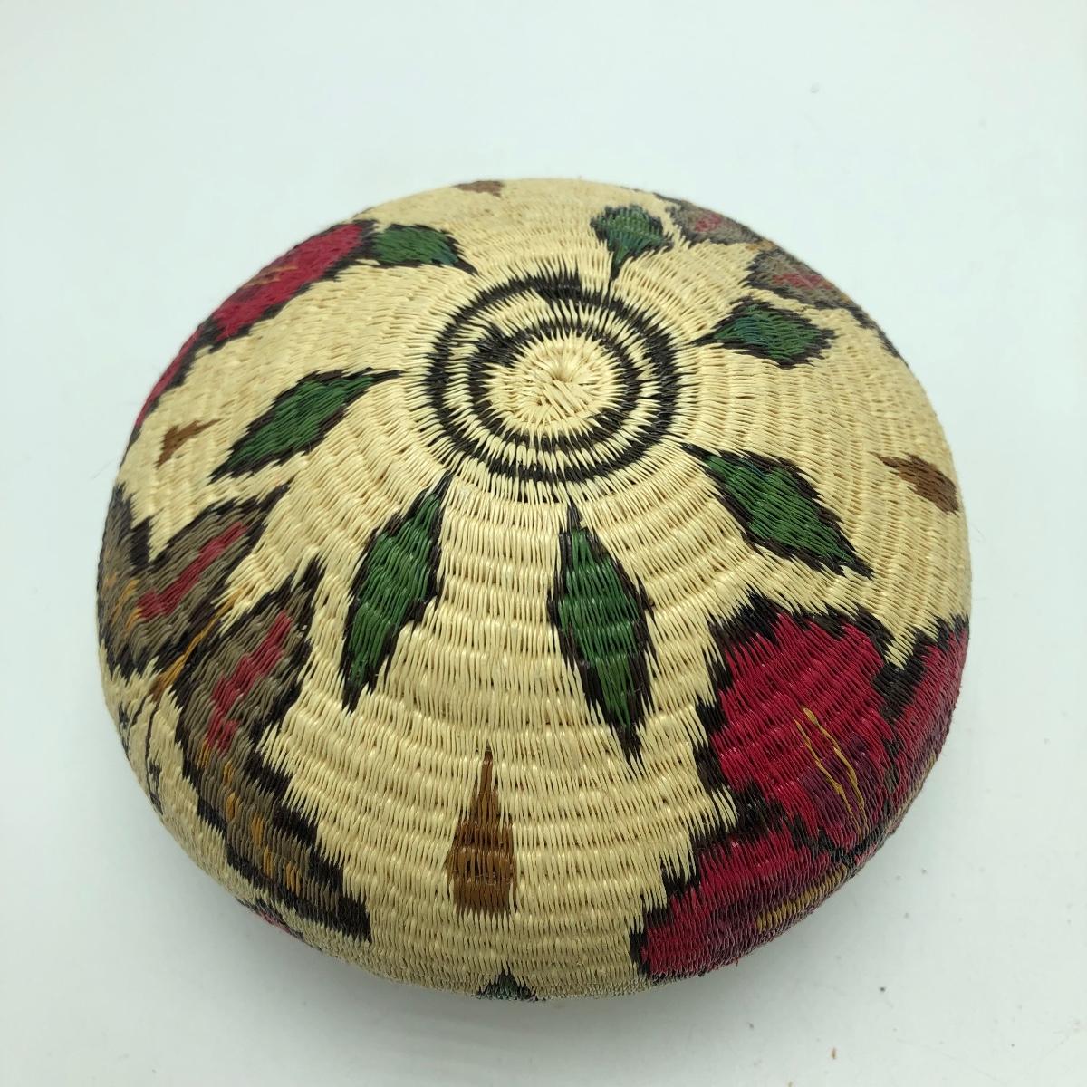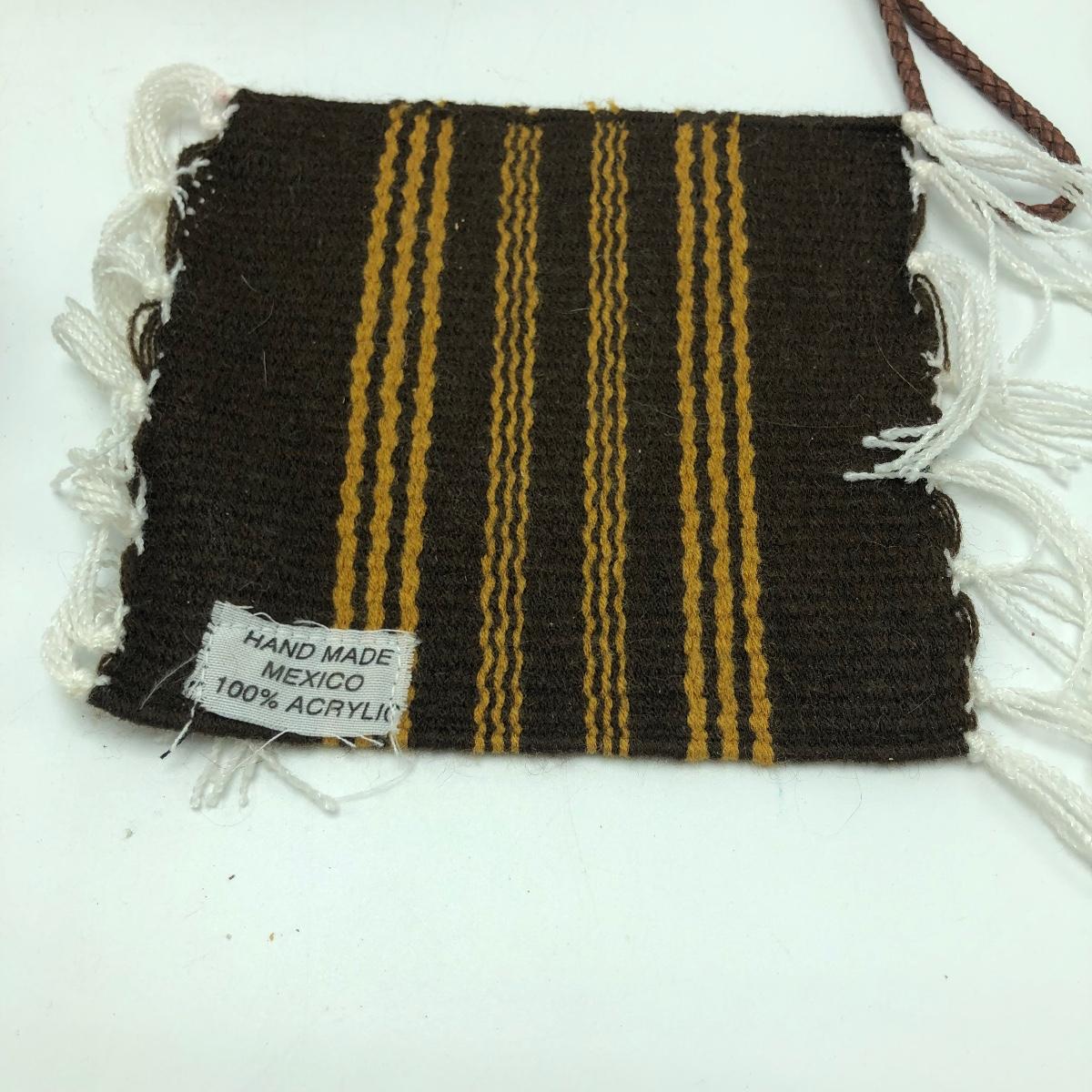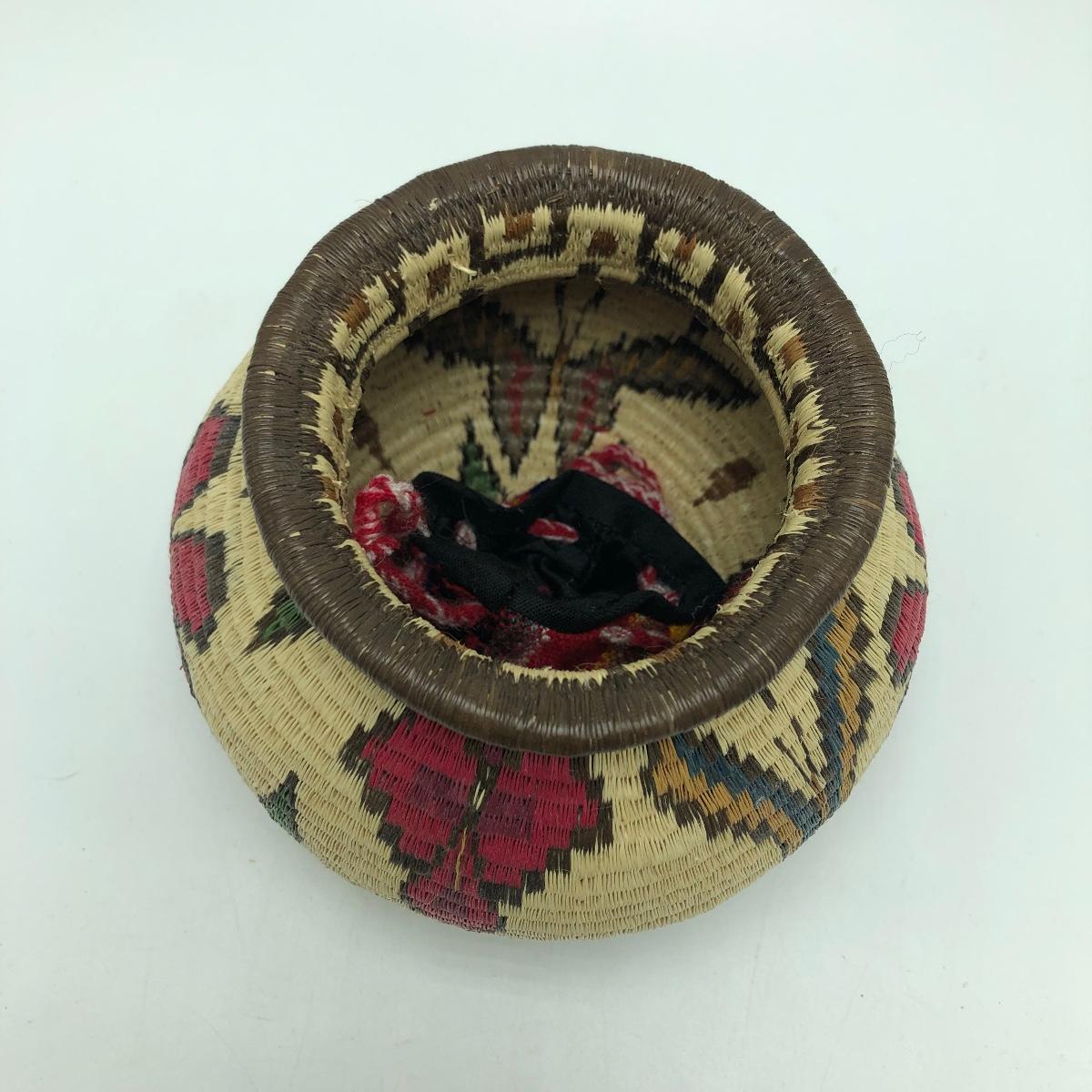 Lot includes Georgian wine bottle, ceramic vase, woven basket, Mexican mini rug, wooden mini canoe, brass knocker, figurine and more. Bottle measures 3”D x 12”.