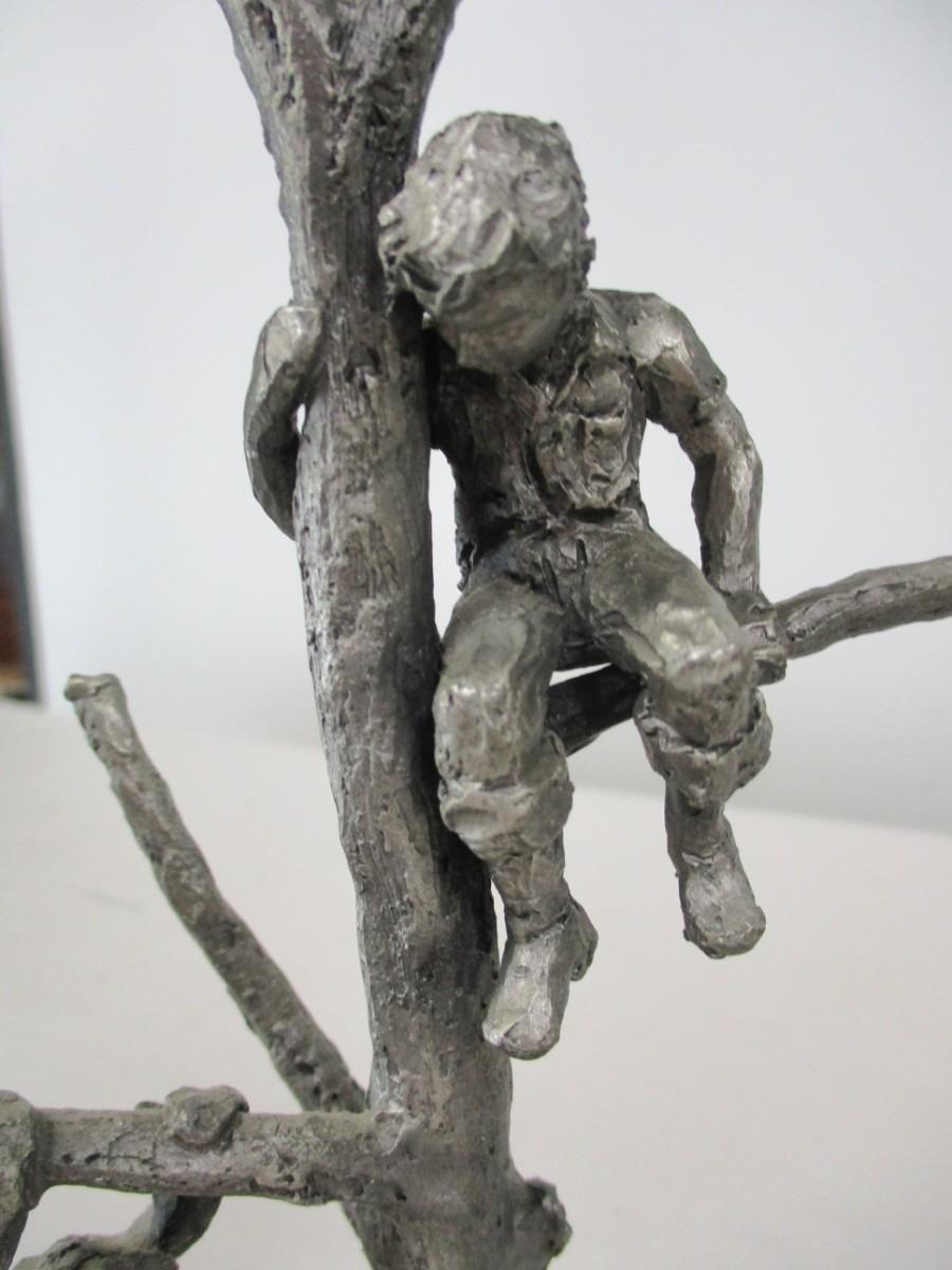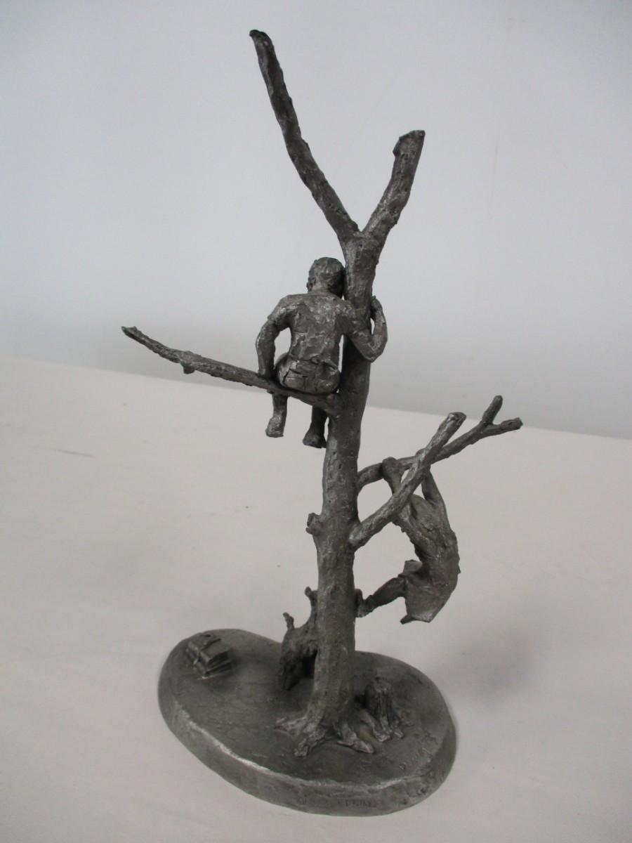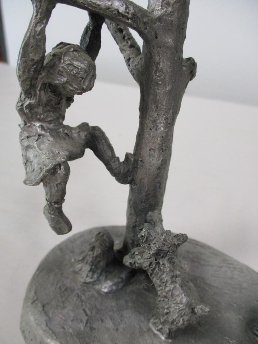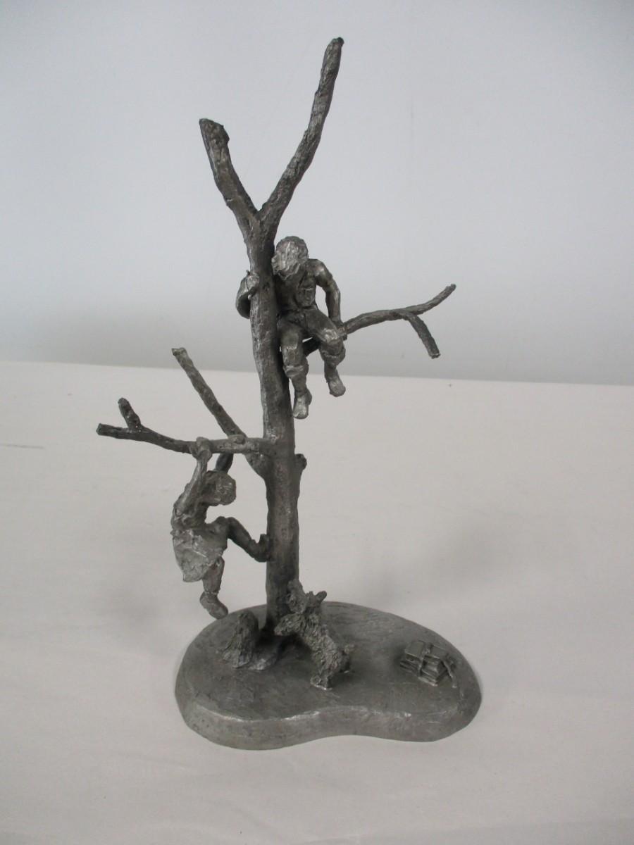 International Pewter Statue/Figurine Boy & Girl Playing In Tree