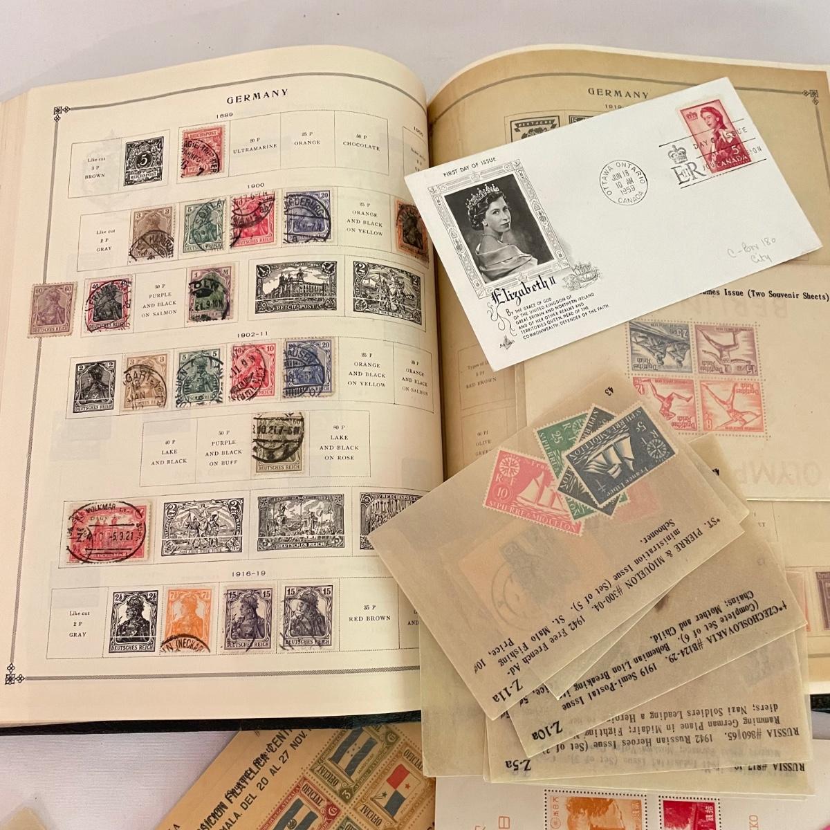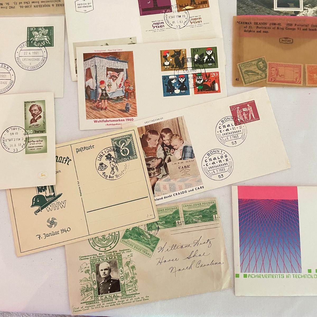 Large collection of international stamps. Lot includes two albums, loose postage and 1st day covers. The International Junior Postage Stamp Album- the first two pages have separated. Lot includes postage from many countries, some cancelled. A large selection of pre-WWII German stamps. See images. Shipping available. Items are sold as-is. No returns or refunds. Please bid accordingly.