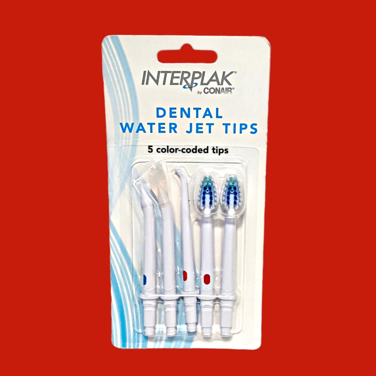 Includes 2 brush head tips, 1 standard water jet tip, 1 gum massage tip, and 1 subgingival tip