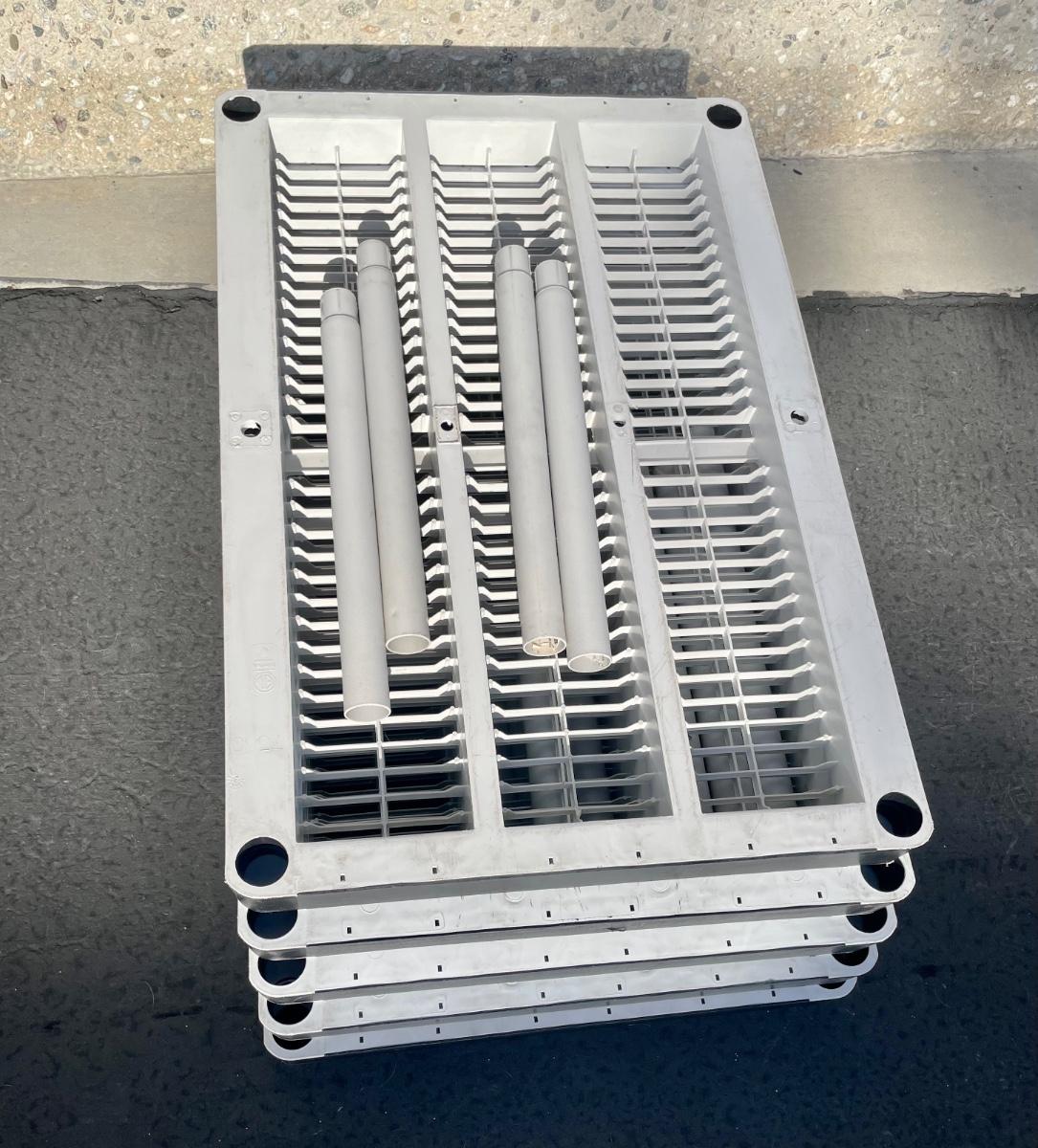 Intertek Keter HDX 36 in. W x 72 in. H x 24 in. D. 5-Shelf Plastic Ventilated Storage Shelving Unit. Originally sold by Home Depot. Used condition, includes 5 shelves and 16 posts; does not include small post feet at bottom as seen in assembled catalog photo. 36” x 24” x 72” tall.