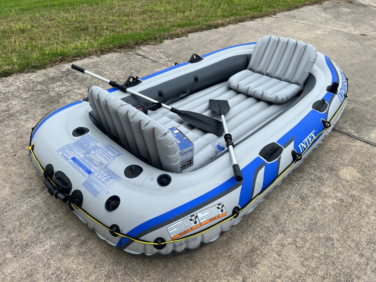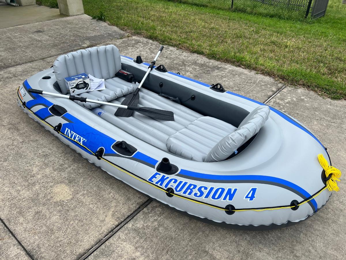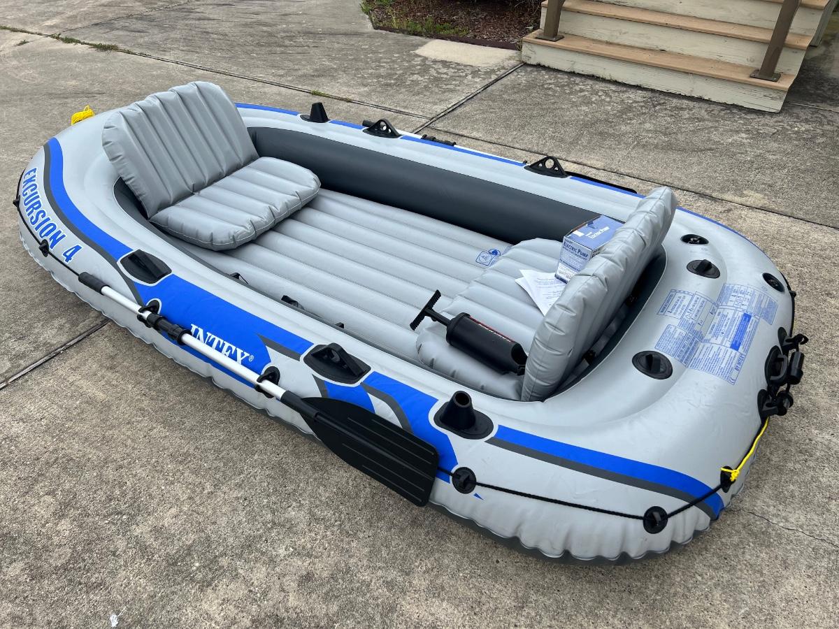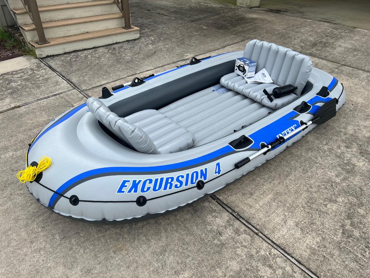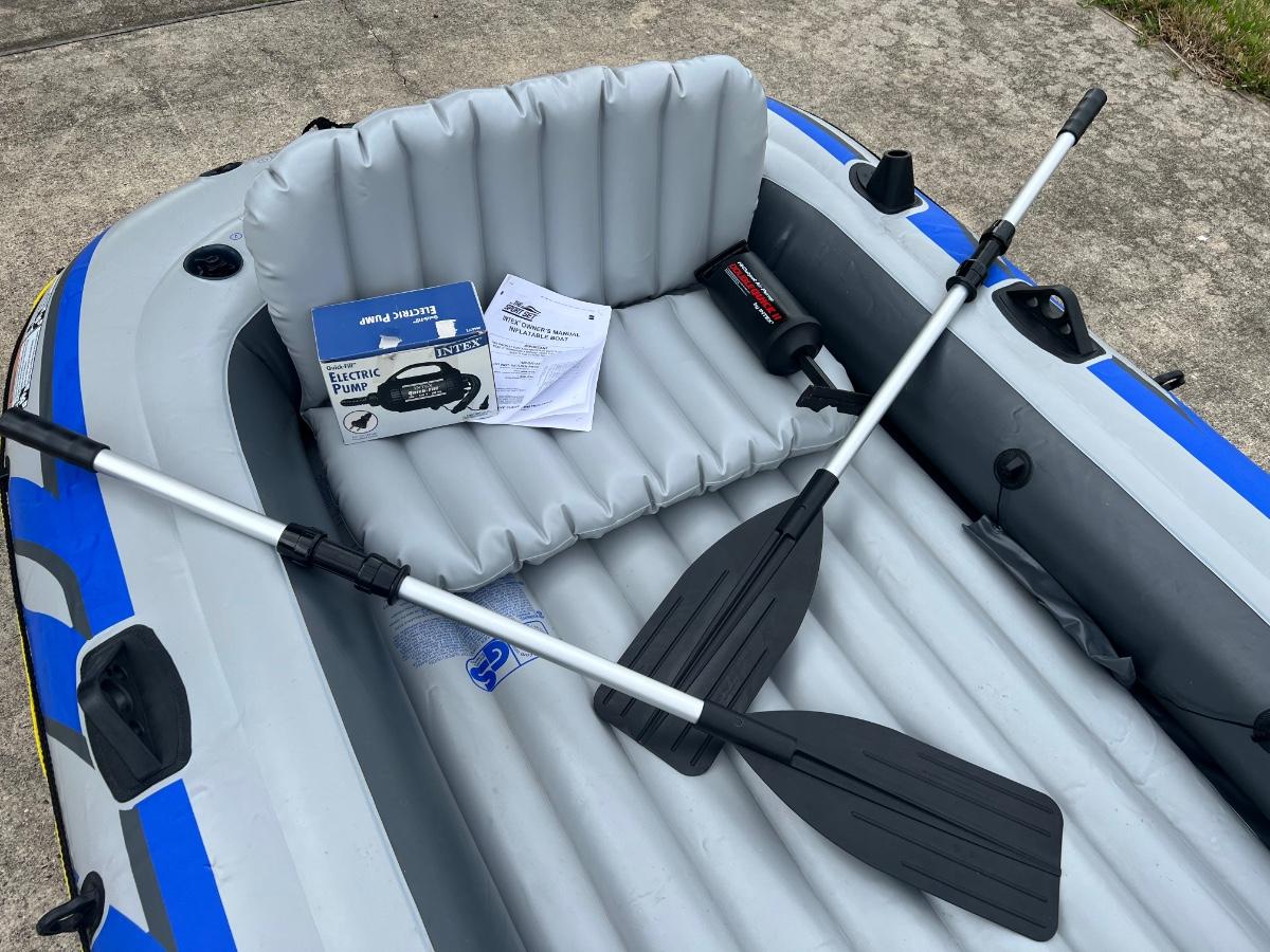 Comes with everything pictured. Electric and hand pump, 2 paddles, manual and a carry bag that it all fits into. Looks to have never been used.