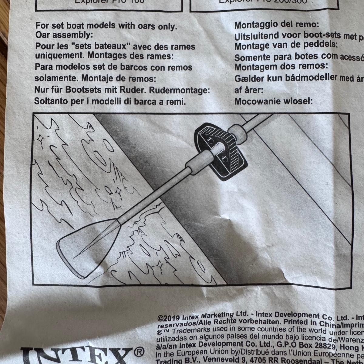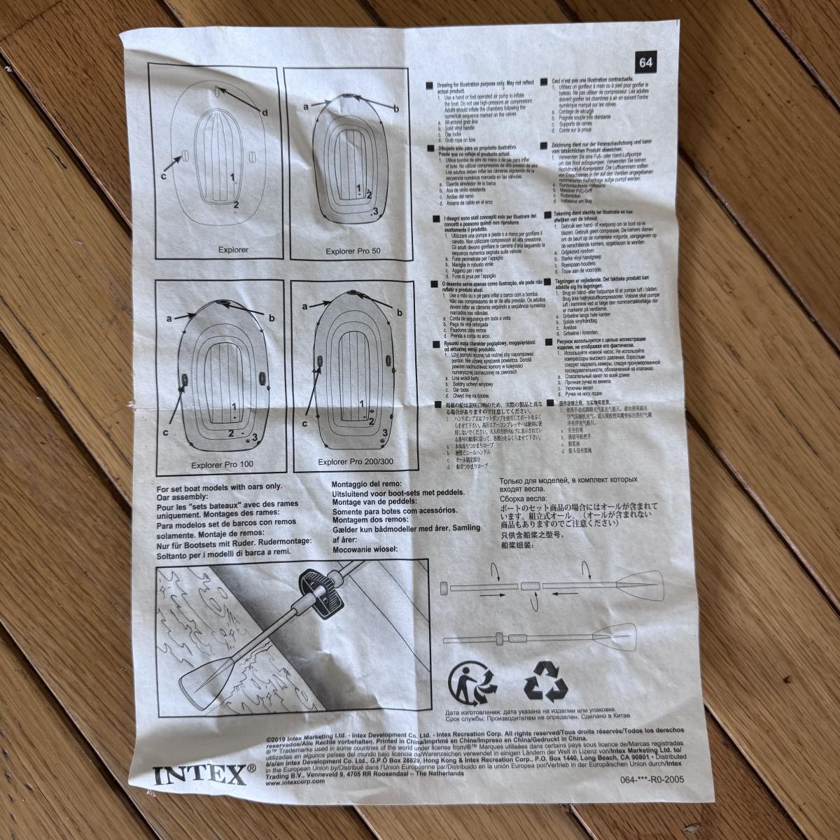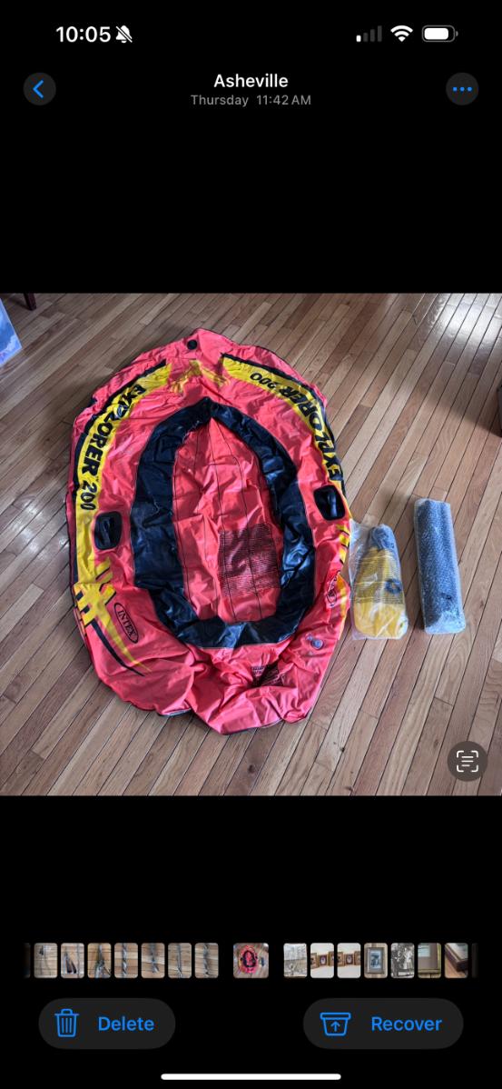 Lot includes one Intex Explorer 200 two-person inflatable raft with two plastic oars included. There is also a mini air pump by Intex included. The oars have not been assembled nor taken out of their original packaging. The raft measures 35” x 66” x 13”H. We left the raft inflated for a few days, and it did not lose air. Shipping available.