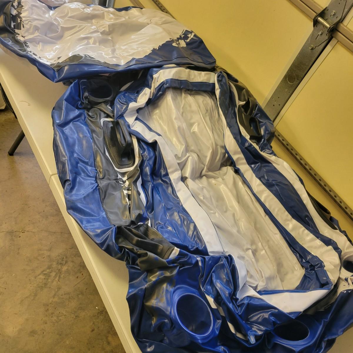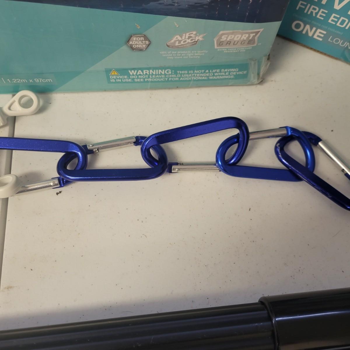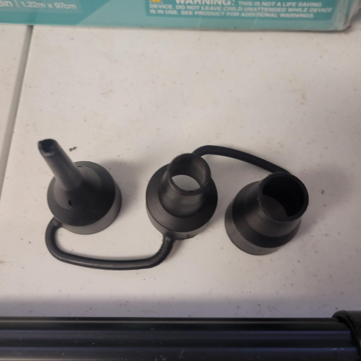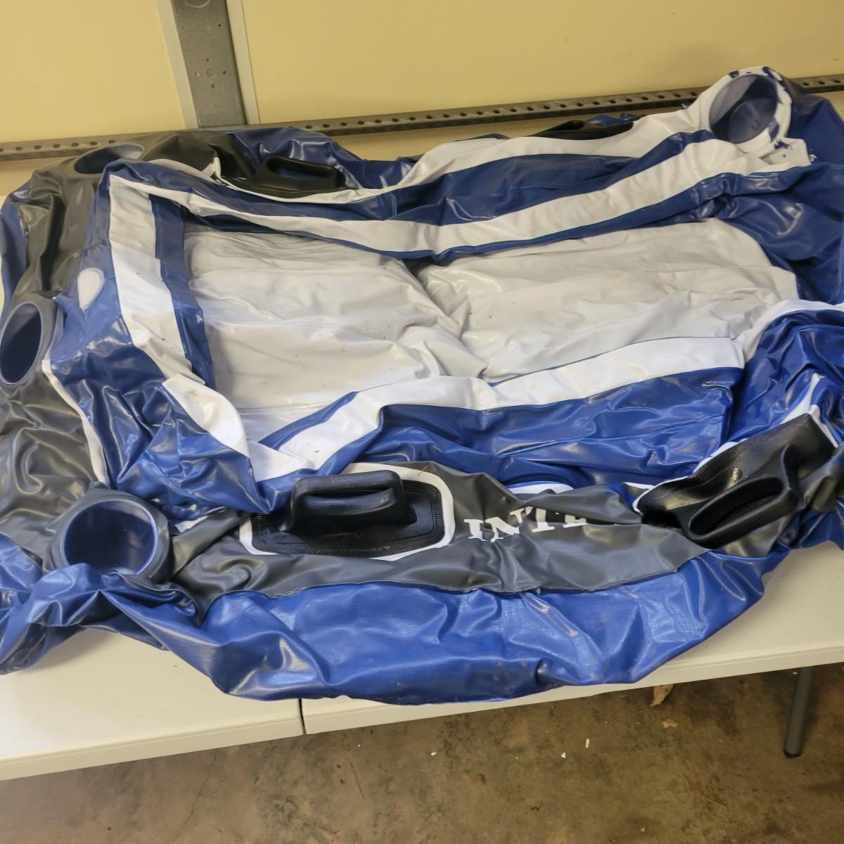 An assortment of float tubes and accessories in good to excellent condition. This lot includes four paddles that break down to two pieces for convenient storage, multiple quick releases to connect tubes together. Two air pumps with car power adapters, one is in an unopened box. Four inflatable float tubes are included, one is in an unopened box and the other three look very lightly used. An inflatable cooler finishes this lot out in style. It features a lid, drink holders and handles. Local pickup only