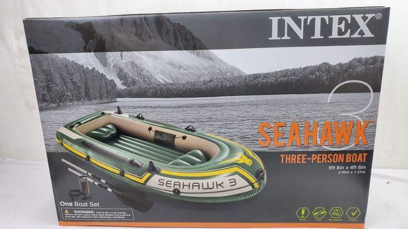 Intex Seahawk 3 Person Inflatable Boat Set with Aluminum Oars & Pump - New