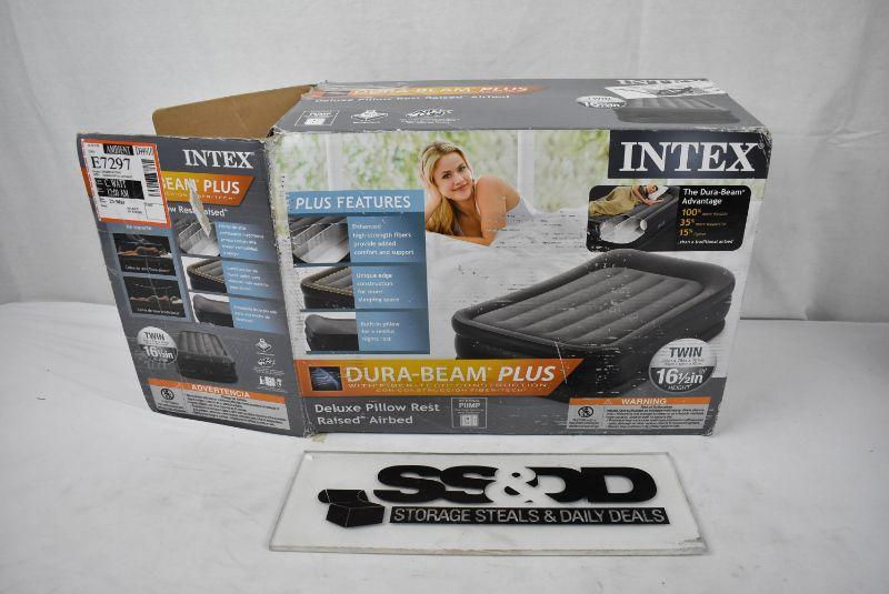 Intex Twin Dura Beam Standard Deluxe Pillow Rest Raised Airbed with Built in Pump. Used/Tested/Works