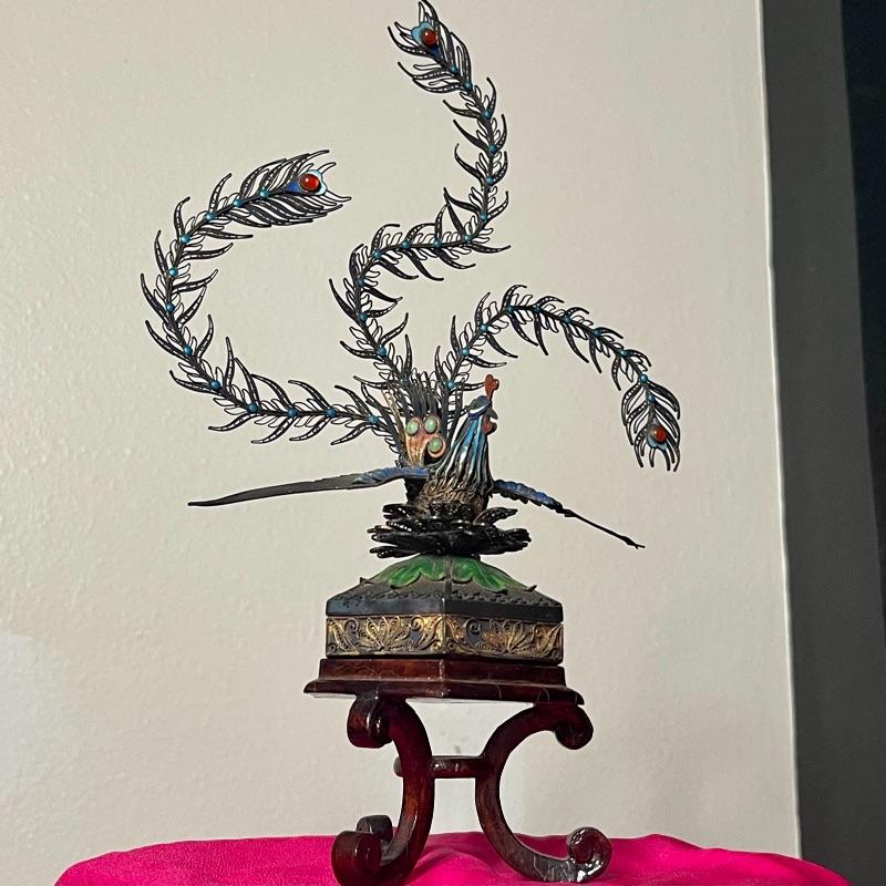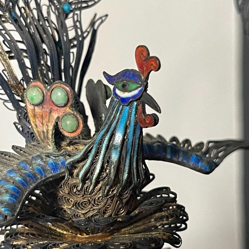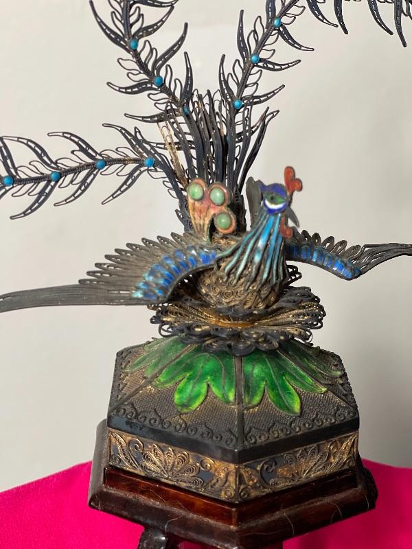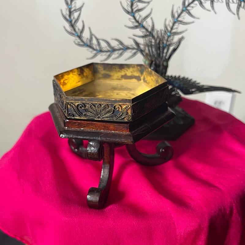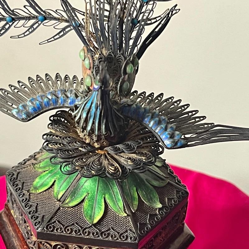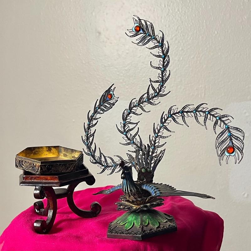 Vintage, Intricate Metal Peacock Trinket Box on Stand