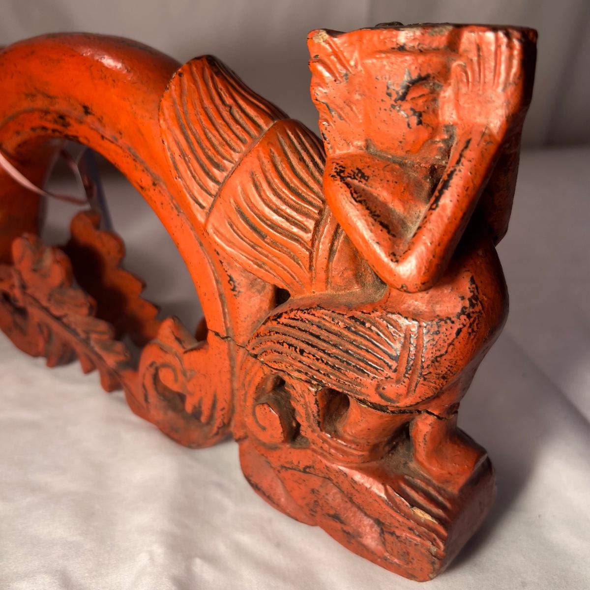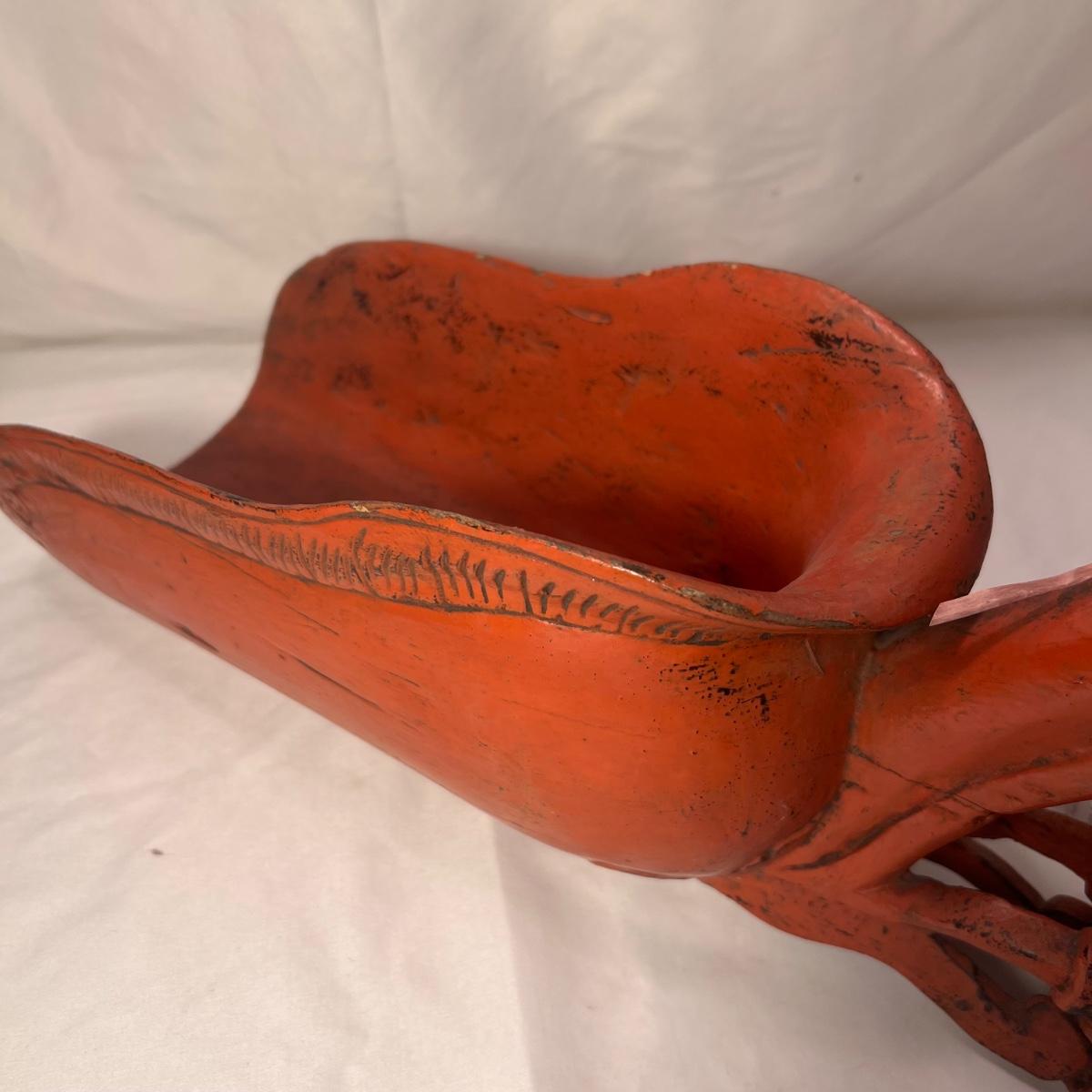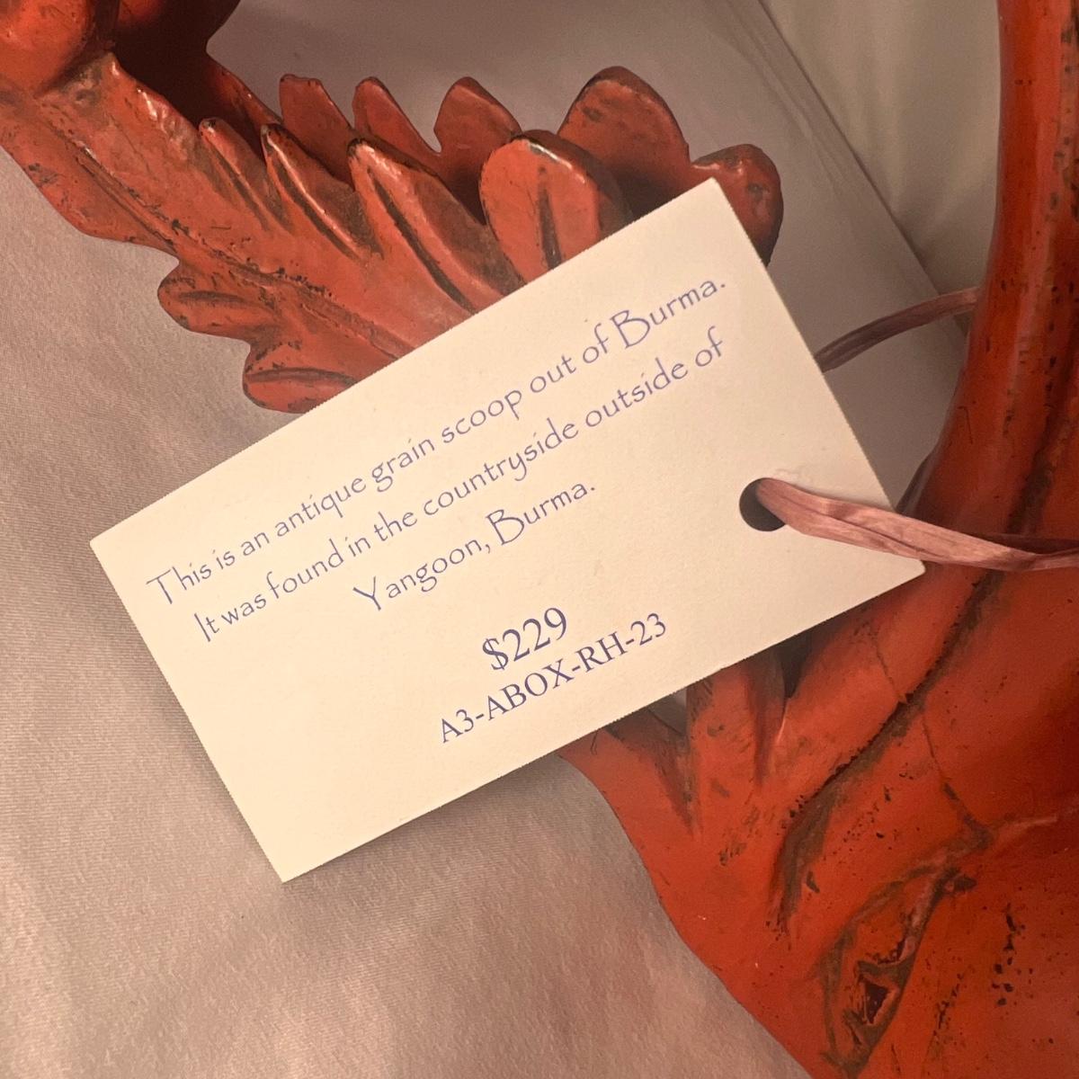 This beautiful wooden grain scoop is fairly lightweight and has a label that states it is from Burma, see pics. It is wood painted a traditional red color purported to bring good luck.